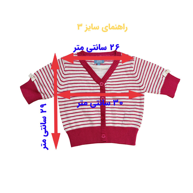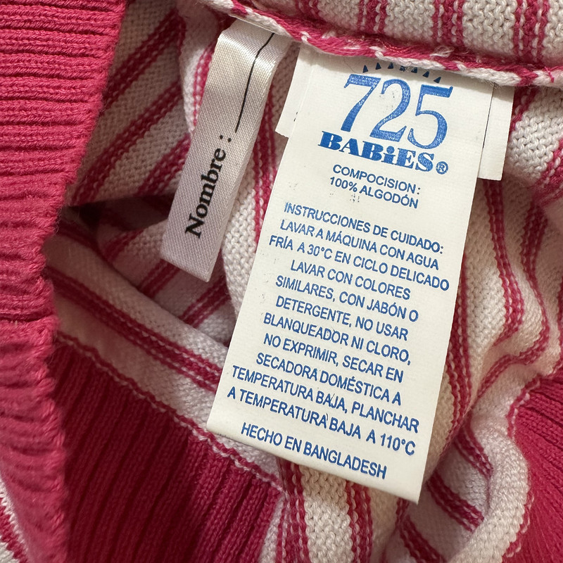 پلیور نوزادی برند 725 بابیس (725 BABiES) دارای 4 دکمه در جلو می باشد. همچنین این پلیور دارای سر آستین کشی همراه با پاپیون تزئینی می باشد. برند مبدا کالا مکزیک و تولید شده در بنگلادش است. جنس این پلیور فوق العاده با کیفیت از 100 درصد پنبه تشکیل شده است.