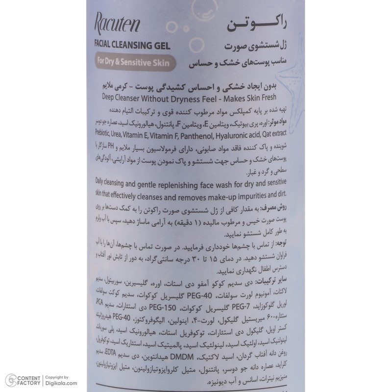ژل شستشو صورت راکوتن مناسب پوست خشک و حساس، یکی از بهترین محصولات راکوتن در دسته زیبایی و سلامت است. این ژل شستشوی پریبیوتیک با فرمولاسیون منحصر به فرد خود، باعث تمیزی عمیق پوست صورت شما با PH فیزیولوزیک میشود. این محصول با داشتن بافت کرمی برای پوستهای خشک و حساس، بدون تحریک و خشکی و حفظ لطافت، پوست را تمیز میکند. ژل شستشو صورت راکوتن حاوی هیالورونیک اسید، اوره، عصاره جو دو سر و پنتنول می باشد که که باعث آبرسانی و التیام بخشی می شود.