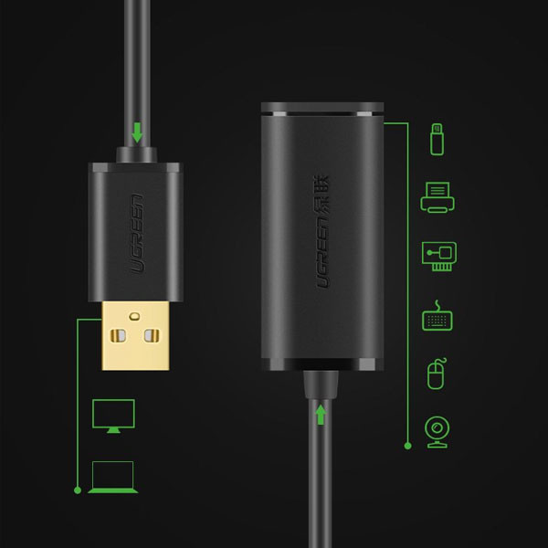 کابل افزایش طول USB2.0 یوگرین مدل US121-10321 طول 10 متر میتواند برای شما یکی از بهترین کابل هایی باشد که تا به امروز استفاده کردهاید . این کابل دارای طول 10 متر و دو سری نری و مادگی USB2.0 بوده که میتواند برای شما بدون کاهش سرعت ، افزایش طول 10 متری USB2.0 را به ارمغان بیاورد . شما در این کابل شاهد استقامت و اتصال بسیار محکم و استاندارد کابل به کانکتورها هستید و این موضوع میتواند برای شما یک مزیت بسیار بزرگ محسوب شود چرا که طول عمر کابل شما را بسیار بالاتر میبرد . این کابل میتواند برای شما سرعت انتقال اطلاعات بسیار بالا را هم ساپورت کند و این موضوع از روی روکش گلد آن کاملا مشهود است.