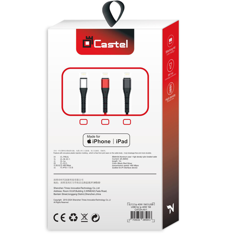 کابل کنفی با برند کستل Castel می تواند جایگزین بسیار مناسبی برای کابل های لایتنینگ گوشی های اپل باشد زیرا با توجه به جنس کنفی و نخی خود، در برابر فشار و کشش بسیار مقاوم بوده و قطعی و پارگی این کابل ها تقریبا صفر درصد هست. بنابراین بسیار مناسب هست که برای گوشی هایی که خصوصا فرزندانمان از آنها استفاده می کنند تهیه کنیم زیرا بچه ها با توجه به اینکه کابل ها را زیاد در حالت فشار و کشش قرار می دهند ممکن است خرابی کابل شارژر آنها زیاد باشد اما با تهیه این کابل های کنفی دیگر از این بابت نگرانی نخواهید داشت. این کابل ها برای انواع دستگاههایی که دارای کانکتورهای USB هستند، مناسب است. این کابل بدنهای با روکش کنفی دارد و در برابر پیچیدن و گره خوردن مقاوم است. این محصول یک متر طول دارد و در یک سمت آن کانکتور USB و در سمت دیگر یک کانکتور لایتنینگ قرار دارد. این کابل قابلیت انتقال اطلاعات و شارژ سریع را برای شما فراهم میکند.