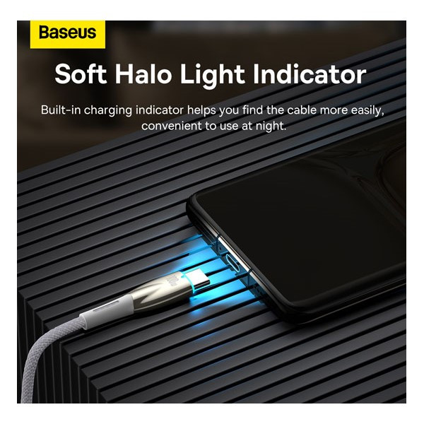 کابل Baseus Glimmer به شما این امکان را می‌دهد تا گوشی‌های هوشمند را با توان 100 وات و 6 آمپر شارژ کنید و همچنین داده‌ها را تا 480 مگابیت بر ثانیه انتقال دهید. هنگامی که باتری کاملاً شارژ شد، به طور خودکار دسترسی به برق را قطع می کند. همچنین دارای دوام استثنایی و مقاومت در برابر آسیب است. علاوه بر این، دارای یک کانکتور روشن برای کارکرد آسان است.