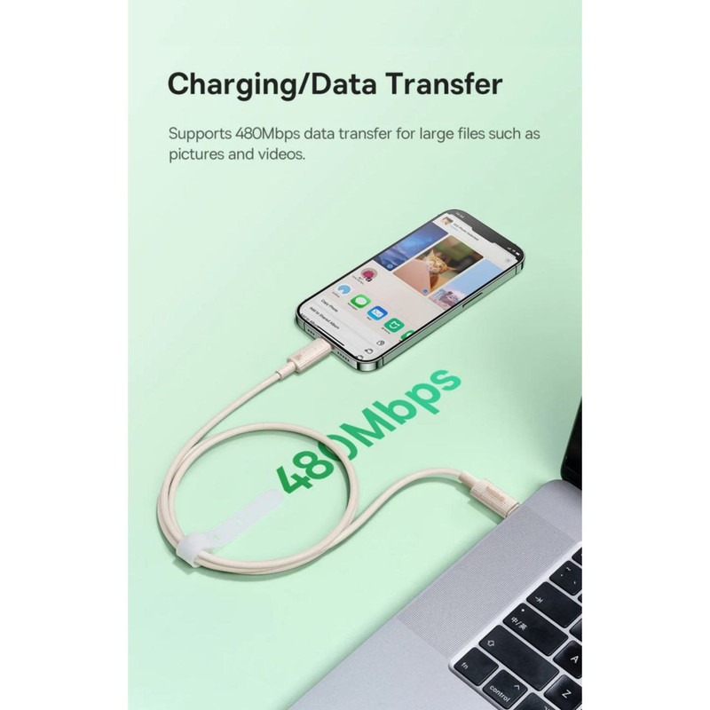 کابل از پلاستیک PC ساخته شد و با 42٪ مواد زیست تخریب پذیر به پایان رسید - پلاستیک با نشاسته ذرت جایگزین شد. همچنین تعدادی آزمایش دوام را گذرانده است و در برابر خم شدن مقاوم است. علاوه بر این، به لطف طول 2 متری آن، هنگام شارژ تجهیزات در ماشین یا محل کار مفید خواهد بود. علاوه بر این، بند مخصوص نگهداری محصول را آسان کرده و از گره خوردن آن محافظت می کند.