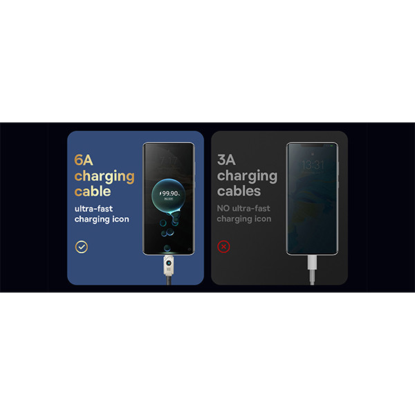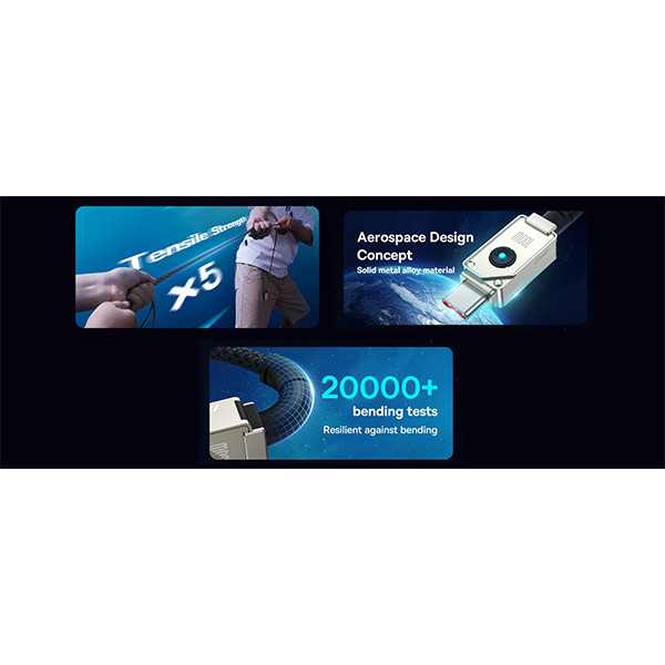 حداکثر جریان عبوری: 6 آمپر، که توان بالایی برای شارژ سریع و ایمن دستگاه‌ها فراهم می‌آورد.جنس: آلیاژ روی و فیبر، که به افزایش دوام و مقاومت کابل در برابر کشش و آسیب‌های مکانیکی کمک می‌کند.این کابل با توان خروجی بالا و قابلیت شارژ سریع، گزینه‌ای ایده‌آل برای کاربرانی است که به دنبال سرعت و کارایی هستند. مواد ساخت آن نیز از کیفیت بالایی برخوردار است، که دوام و طول عمر کابل را تضمین می‌کند.