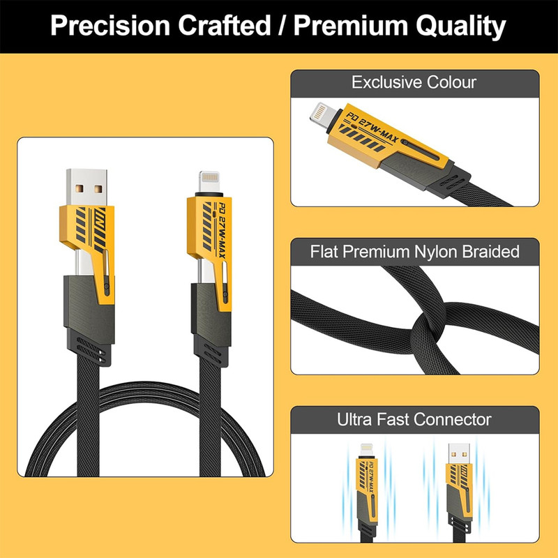 کابل چندکاره آکوآرا مدل 2to2 با طراحی تخت و بدنهی کنفی مقاوم، گزینهای ایدهآل برای کسانی است که به دنبال یک کابل همهکاره، با دوام و کاربردی هستند. این کابل دارای دو سر ترکیبی است: یک طرف آن قابلیت تبدیل بین USB و USB-C را دارد، و طرف دیگر بین USB-C و Lightning، بنابراین مجموعاً چهار حالت مختلف اتصال را در اختیار شما قرار میدهد. با این کابل میتوانید انواع دستگاههای اندرویدی، آیفون و سایر گجتها را بدون نیاز به کابل اضافه شارژ یا انتقال داده کنید. طراحی تخت آن از گره خوردن جلوگیری میکند و روکش کنفی مستحکم، دوام بالا در استفادهی روزمره را تضمین میکند.