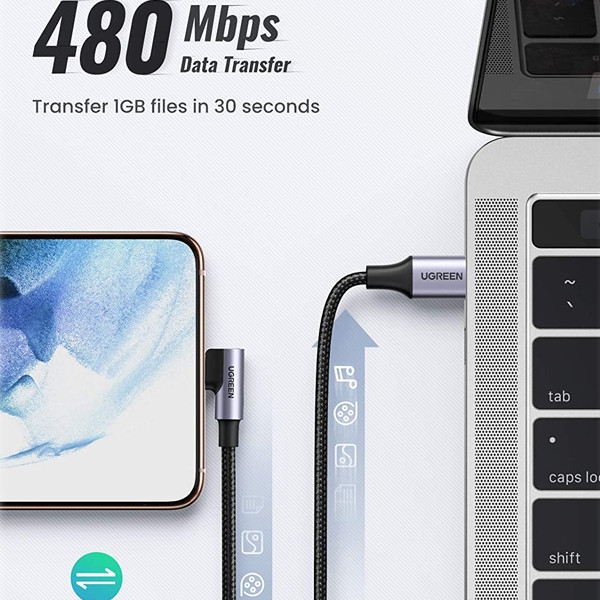 کابل Type C دو سر نر یوگرین مدل US255 طول 1 متر زاویه 90 درجه از اکثر پروتکل های شارژ سریع مانند USB Power Delivery، Qualcomm QC 4.0+/3.0 و Huawei FCP پشتیبانی می کند و 20V/3A (حداکثر 15V/3 A، 12V/3A، 9V) را ارائه می دهد. کابل USB C یوگرین مدل US255 از سرعت انتقال داده تا 480 مگابیت در ثانیه پشتیبانی می کند، فایل های 1 گیگابایتی در عرض 30 ثانیه منتقل می شوند. انتقال آسان و راحت فایل ها، فیلم ها، کلیپ های ویدئویی، عکس ها، فیلم ها از گوشی های هوشمند Type C به لپ تاپ یک انتخاب عالی برای بهبود راندمان کار و صرفه جویی در زمان می باشد. مقاومت کششی داخلی 56 اهم به طور خودکار ولتاژ و جریان خروجی کابل شارژ سریع USB C را مطابق با دستگاه شما تنظیم می کند و به جلوگیری از مشکلات اضافه جریان و اضافه ولتاژ کمک زیادی می کند. کابل داده شارژر USB Type C دارای یک ژاکت آلیاژ آلومینیومی قوی و یک ژاکت بافته شده نایلونی بدون گره خوردن برای افزایش انعطاف پذیری و دوام است.