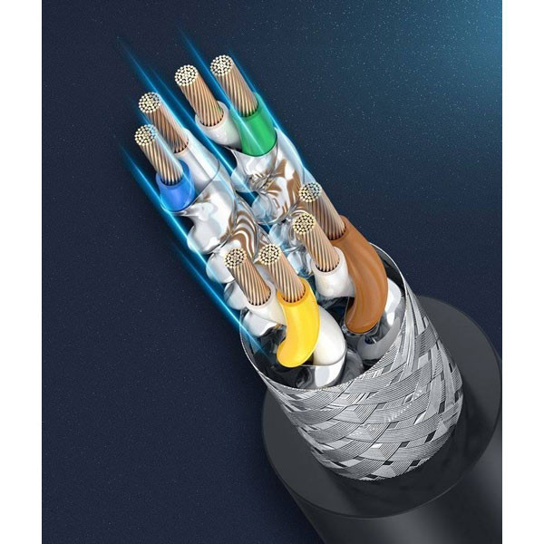 کابل شبکه UGREEN CAT8 SFTP با داشتن کابل ضخیم و آلیاژ تمام مس و سر سوکت فلزی سر طلایی ، قابلیت پشتبانی از فرکانس 2000MHZ و انتقال اطلاعات تا 40Gbps را دارد . از کابل پچ کورد یوگرین CAT8 برای ارتباط بین کامپیوتر و مودم ، سوییچ های گیگابیتی ، پچ پنل ها و … استفاده می شود . کابل شبکه UGREEN CAT8 SFTP دارای شیلد و فویل جفتی و دارای آلیاژ 100 درصد مس می باشد . کلیه محصولات UGREEN با ارائه استانداردهای لازم برای کابل ها و مبدل های خود ، از سال 2012 تاکنون جزء پر فروش ترین برند در کشورهای اروپایی در زمینه کابل و مبدل بوده است. هم اکنون قطعات UGREEN در سایت آمازون در ایالت متحده امریکا ، ژاپن ، انگلستان ، آلمان ، اسپانیا ، فرانسه به تعداد زیاد به فروش می رسند و جزء محبوب ترین کالاها از دیدگاه مشتریان است.