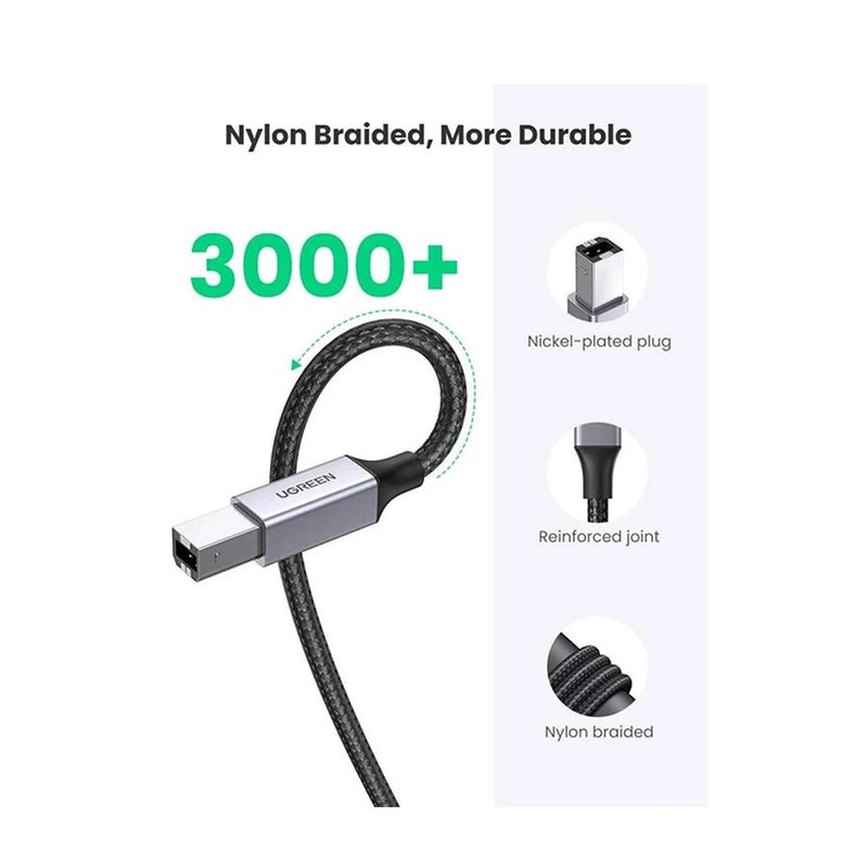 کابل پرینتر مدل «US369-80804» ساخت شرکت «یوگرین» (Ugreen) یک کابل USB به طول 3 متر است که دستگاههای مجهز به پورت USB را به پرینترها و اسکنرهای دارای کانکتور USB-B متصل میکند. این کابل با تمامی دستگاههای دارای پورت USB سازگار است؛ همچنین این کابل برای انواع پرینترها، اسکنرها و دستگاههای فکس دارای پورت USB-B مناسب است. این کابل شرکت یوگرین از روکش انعطاف پذیر و بادوام برخوردار است ؛ بنابراین، میتوانید از کیفیت مناسب این کابل مطمئن باشید. گفتنی است این کابل در برابر نویز مقاوم است؛ داشتن قابلیت مقاومت در برابر نویز به این معنی است که با استفاده از این کابل، اتصال مطمئنی را شاهد خواهید بود. کابل US135 از سرعت انتقال اطلاعات 480 مگابیت در ثانیه بهره می برد. این کابل کاملاً استاندارد است و اگر شما به دنبال استفاده از کابلی قابلاعتماد برای اتصال پرینتر خود هستید، میتوانید از این محصول استفاده کنید.