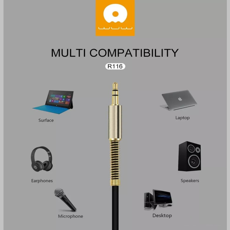 اگر به دنبال انتقال صدای باکیفیت هستید انتخاب کابل مناسب بسیار ضروری است. کابل انتقال صدای دبلیو یو دبلیو مدل R116 که قابلیت اتصال به دستگاه های هوشمند شما از جمله لپ‌تاپ، تلویزیون، تبلت، بلندگو، استریو ماشین و استریو خانگی، گیرنده‌های دیجیتال و هر دستگاهی که مجهز به درگاه جک 3.5 میلی‌متری است را دارد. این کابل با روکش PVC خود مقاوم در برابر گره خوردن و در هم پیچیدن ست و فنری که در ابتدا و انتهای کابل تعبیه شده آن را در برابر پارگی مقاوم تر می کند و طول یک متری آن هم تاییدی بر ساخت استاندارد این کابل می باشد.