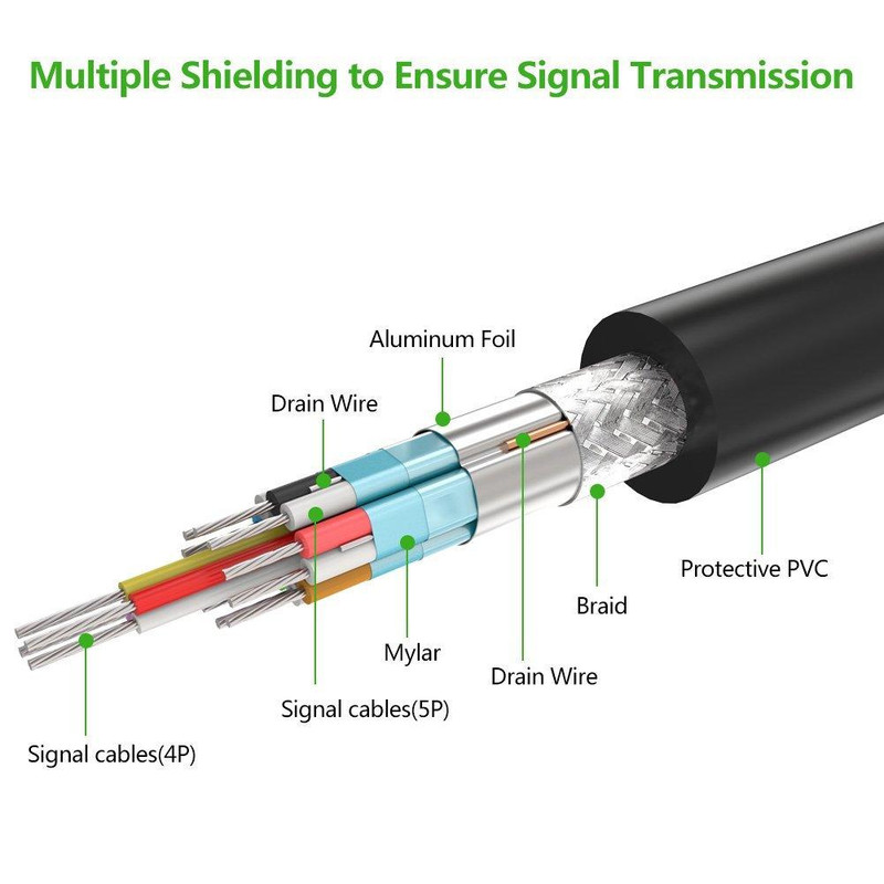 کابل Display port برندUgreen از نوع با ورژن 1.2v برای اتصال لپ تاپ ، گرافیک به مانیتور ، پرژکتور است. این کابل از رزولوشن 3840×2160 @60Hz and 1080P Full HD و 4K پشتیبانی می کند. این کابل قابلیت انتقال صدا را در حالت 5.1 و 7.1 و 2 کانال را دارد.