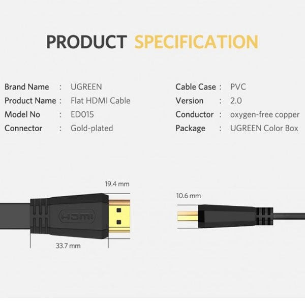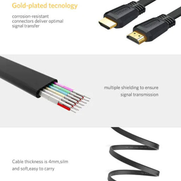 کابل HDMI یوگرین مدل ED015-70159 ،این کابل Flat بوده و کیفیت 3840x2160@60Hz را پشتیبانی میکند. با این کابل به راحتی میتوانید کنسول های گیمینگ، لپ تاپ و کنسول Nintendo خود را به مانیتور های بزرگ متصل کنید و از کیفیت 4K استفاده کنید.