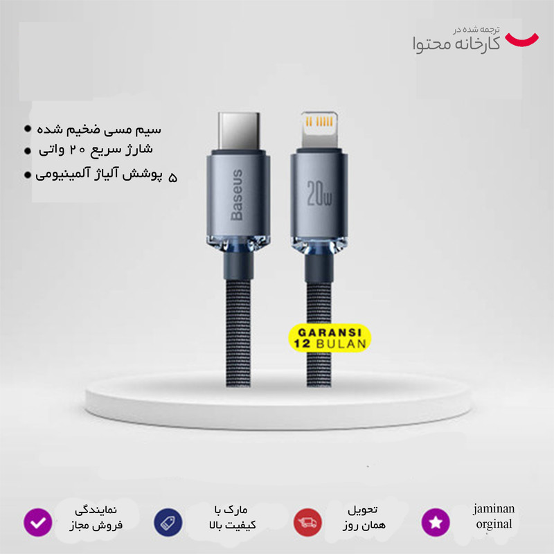 امروزه ممکن است که ما از شارژهای وایرلس برای شارژ وسایل برقی خود استفاده کنیم ولی همچنان کابلها دارای سرعت و کیفیت بهتری هستند. کابل بییسوس یک سر آن دارای درگاه لایتنینگ و سر دیگر دارای درگاه تایپ سی میباشد. توان این کابل لایتنینگ 20 وات میباشد که باعث شده تا کاربر بتواند با سرعت بالا گوشی خود را شارژ کند.