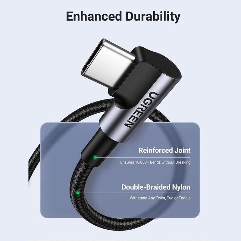 کابل Usb-C یوگرین مدل 70643 قابلیت شارژ سریع ( Fast charge) 5 آمپر و 100 وات میباشد. جنس این کابل بافت بوده و از سری آلومینیومی بهره میبرد.این کابل جهت انتقال فایل های صوتی و ویدیویی استفاده نمیشود.