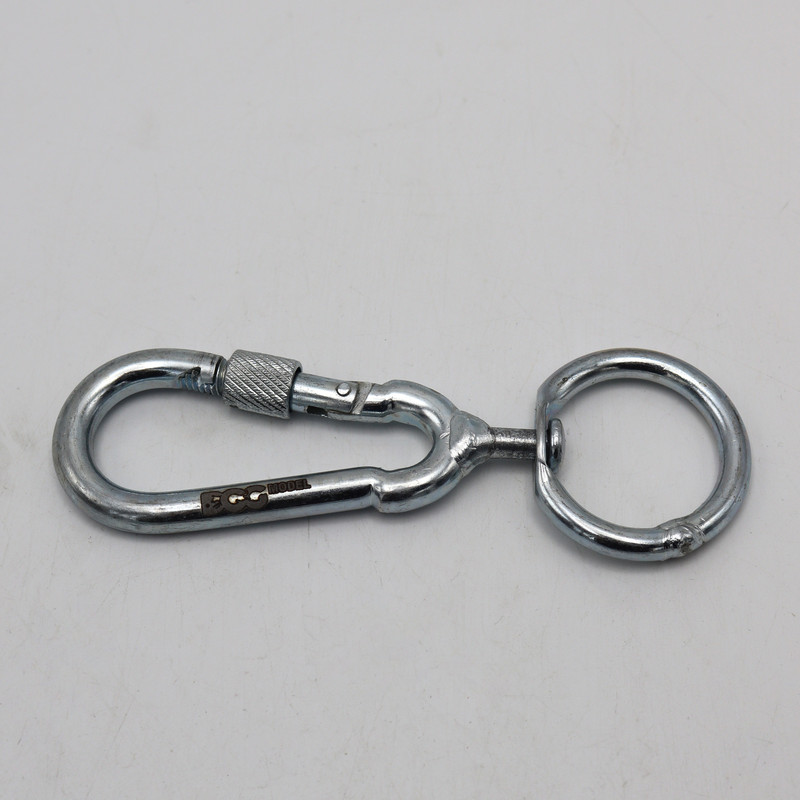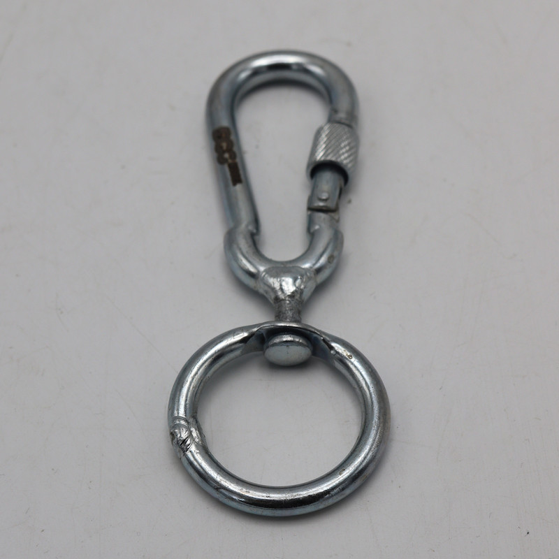 | سایر توضیحات | - کارابین گردان سایز 8 مدل داگ - سايز : 8 ( طول با حلقه گردان زیرین 13 سانتیمتر ) - سايز دهانه باز : 25 ميلي متر ( حدود 2.5 سانتیمتر) - دارای حلقه فلزی گردان در زیر کارابین - دارای پیچ برای باز و بست دهانه بازشوبرای ایمنی بالاتر کاربر - بيضي شكل |