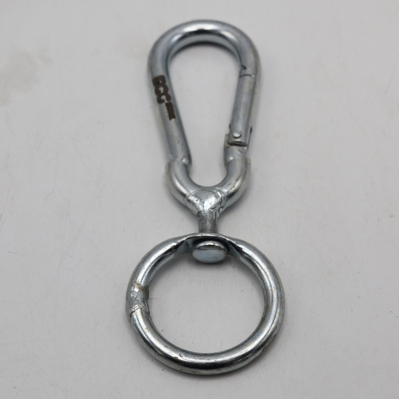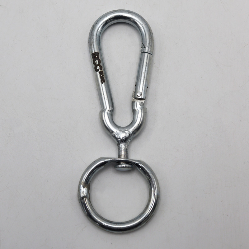 | سایر توضیحات | - کارابین گردان سایز 8 مدل داگ - سايز : 8 ( طول با حلقه گردان زیرین 13 سانتیمتر ) - سايز دهانه باز : 25 ميلي متر ( حدود .2.5 سانتیمتر) - دارای حلقه فلزی گردان در زیر کارابین - بيضي شكل |