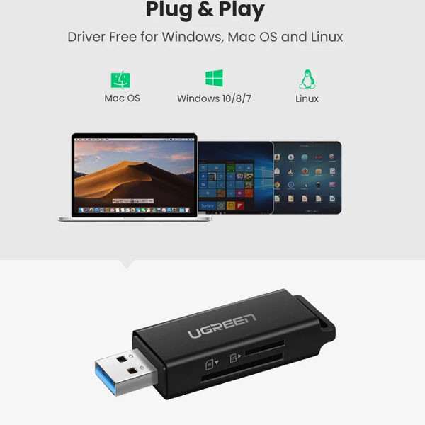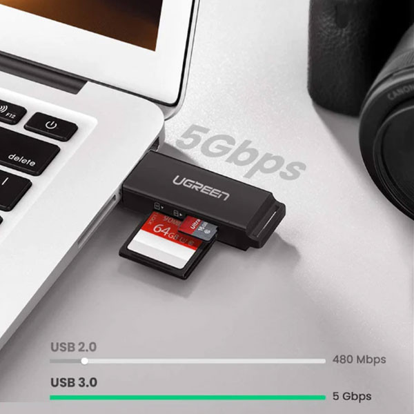 کارت‌خوان «CM104-40752» که برند «یوگرین» آن را تولید کرده است ، دو اسلات جداگانه برای کارت‌های حافظه‌ی SD و TF دارد که اگر در هر دوی این شیارها کارت حافظه قرار گیرد ، می‌توان به صورت هم‌ زمان اطلاعات را به هر دوی این کارت‌ها منتقل کرد. این کارت‌خوان از طریق درگاه USB 3.0 تایپ A به دیوایس‌ها متصل می‌شود و به‌ واسطه‌ی همین درگاه از نسل جدید USBها ، عمل خواندن و نوشتن اطلاعات را بسیار سریع و با حداکثر سرعت 100MB/s انجام می‌دهد . کارت‌خوان CM104-40752 یوگرین سازگاری گسترده‌ای با انواع سیستم‌ها و دستگاه‌ها دارد و با دستگاه‌های دارای درگاه USB تمامی برندها ارتباط برقرار می‌کند . با استفاده از این کارت‌خوان می‌توان از انواع کارت‌های حافظه‌ Micro SD + SD Card استفاده کرد.