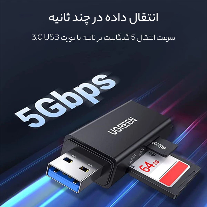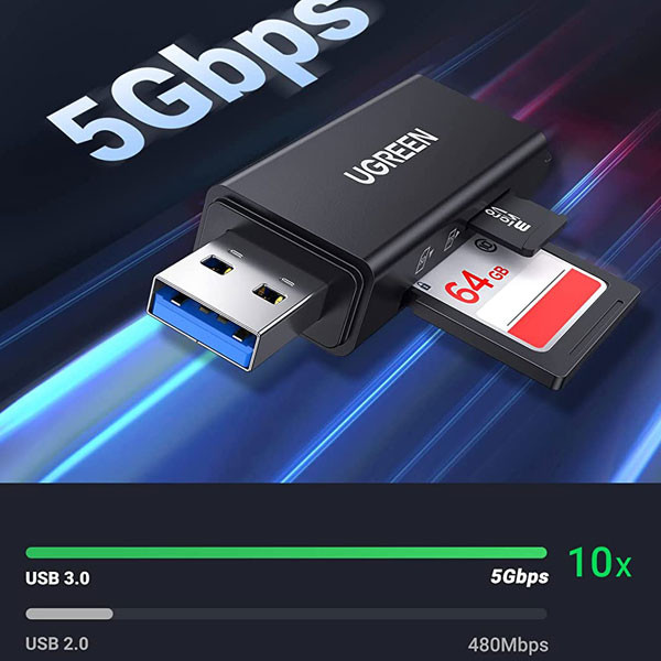 کارت‌خوان «CM104-40752» که برند «یوگرین» آن را تولید کرده است ، دو اسلات جداگانه برای کارت‌های حافظه‌ی SD و TF دارد که اگر در هر دوی این شیارها کارت حافظه قرار گیرد ، می‌توان به صورت هم‌ زمان اطلاعات را به هر دوی این کارت‌ها منتقل کرد. این کارت‌خوان از طریق درگاه USB 3.0 تایپ A به دیوایس‌ها متصل می‌شود و به‌ واسطه‌ی همین درگاه از نسل جدید USBها ، عمل خواندن و نوشتن اطلاعات را بسیار سریع و با حداکث...