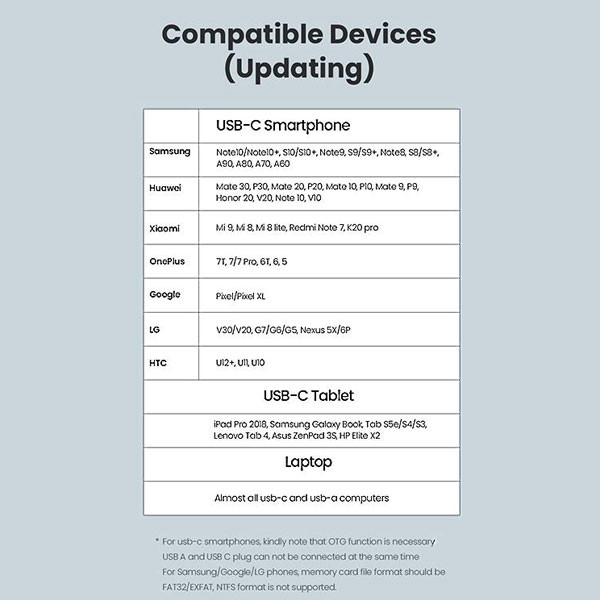 امکانات و قابلیت‌هااتصال دهنده : TF Card , SD Card xxx قابلیت پشتیبانی : USB 3.0 و Type-C xxx پشتیبانی از موبایل های که قابلیت OTG دارند