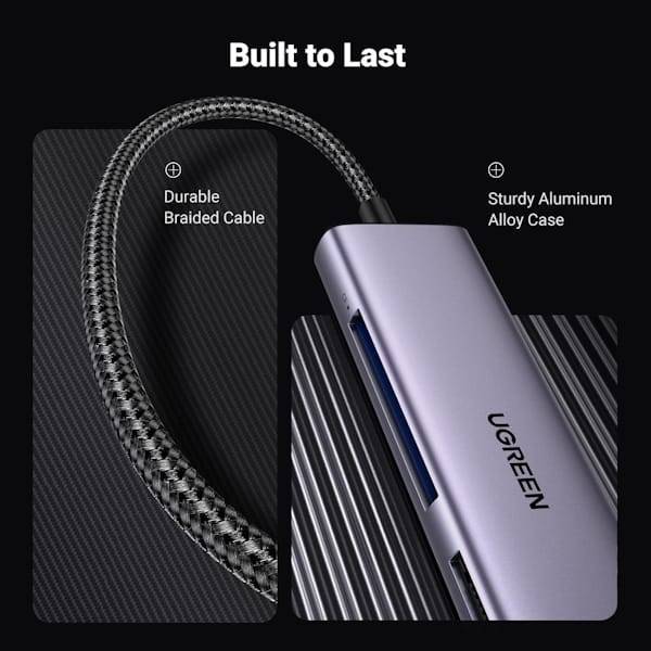سرعت انتقال داده این رم ریدر به 5 گیگابیت بر ثانیه می رسد. رم ریدر یوگرین مدل CM627 کد 15307 دارای پورت ورودی USB-C و پورت خروجی کارت SD ،MS ،CF و TF است. طراحی جمعوجور و قابل حمل این کارت خوان باعث شده به راحتی آن را حمل کنید و همراه لپ تاپ خود داشته باشید. از ویژگی های این رم ریدر یوگرین میتوان به استفاده از همه کارت بهصورت همزمان اشاره کرد. جنس کارت خوان یوگرین از آلومینیوم بوده و بسیار مقاوم و بادوام است.