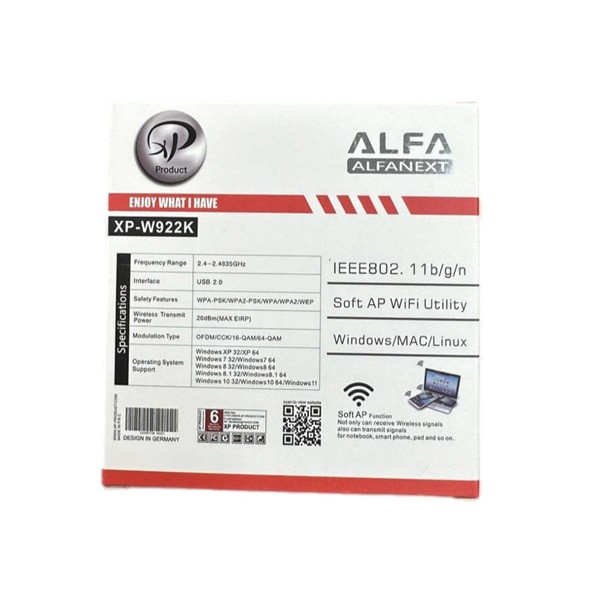 دانگل وای فای وسیله ای کوچک برای اتصال سیستم به شبکه های بی سیم Wifi است. دانگل WiFi برند XP مدل W922 قادر به اتصال به شبکههای Wi-Fi با فاصله تا 7 متر از مودم یا دورتر میباشد. این محدوده، به کاربر امکان دسترسی به اینترنت در محیطهای کوچک را میدهد و مناسب برای استفاده در مکانهای کوچک است. این دانگل روی تمام سیستم عامل ها از جمله ویندوز و لینوکس امکان پاسخ دهی دارد. از طرفی اندازه کوچک آن امکان حمل و جابه جایی را راحت میکند. این دانگل مناسب برای افرادی است که به دنبال یک راه حل ساده و کم حجم برای اتصال به اینترنت بیسیم هستند.