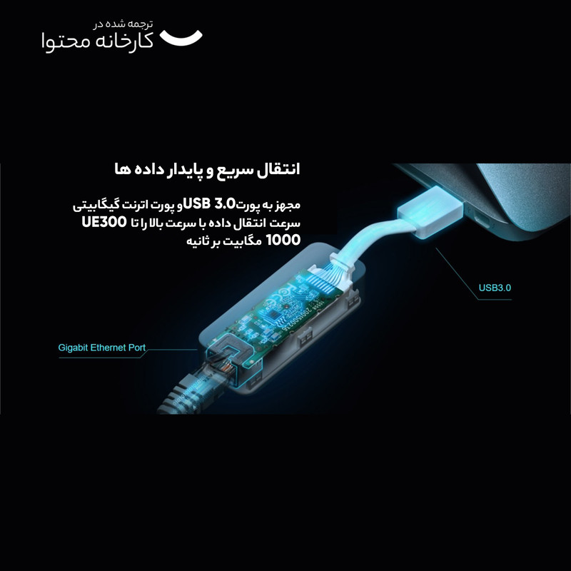 مبدل USB3.0 به اترنت (Ethernet) مدل UE300 شرکت تی پی لینک (TP-LINK) به شما این امکان را میدهد که کابل LAN را به ورودی USB کامپیوتر خود وصل کنید. این مبدل برای لپتاپ و سیستم های فاقد پورت LAN به صورت اکسترنال استفاده می شود. حتی در کامپیوتر یا لپتاپهایی که به یک درگاه LAN مجهز هستند میتوان تعداد درگاه LAN را افزایش داد. به کمک این مبدل، میتوان از خروجی USB3.0 یک درگاه شبکه به صورت اکسترنال دریافت کرد. این مبدل سرعت انتقال اطلاعات تا 1000 مگابیت بر ثانیه را دارد و بدون هیچ قطعی در ارتباط، انتقال اطلاعات را پشتیبانی می کند. علاوه براین، قابلیت سازگاری با سیستم عمل مک (Mac) و لینوکس (Linux) را در کنار پشتیبانی از سیستمعامل ویندوز (Windows) دارد.