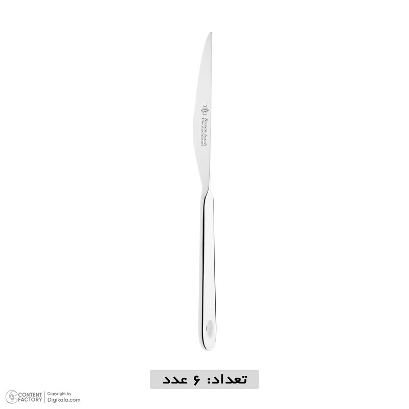 | سایر توضیحات | 6 عدد کارد سرو گوشت به ابعاد 24x2x2 سانتی متر و وزن 85 گرم - استیل18/10ضد زنگ با ضخامت3/5میلیمتر |