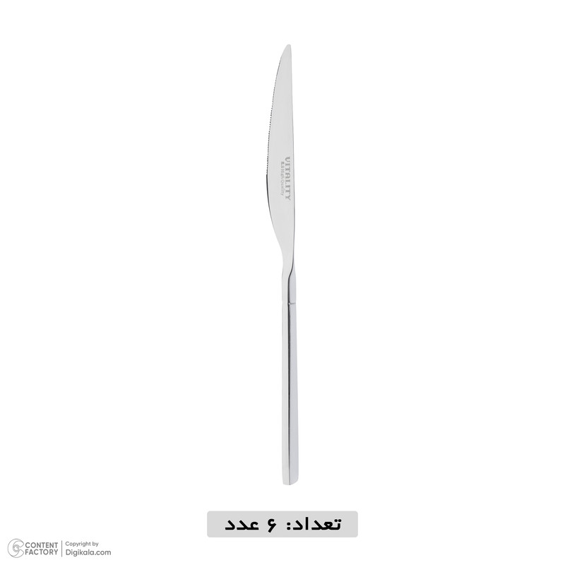 | سایر توضیحات | ۶ عدد کارد سرو استیک به ابعاد 24x2x1 سانتیمتر و وزن ۷۵ گرم استیل18/10ضد زنگ با ضخامت3/5میلیمتر |