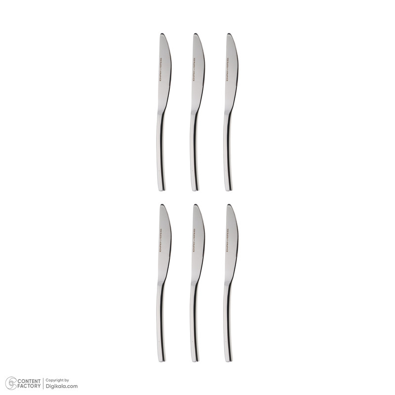 | سایر توضیحات | 6 عدد کارد غذا خوری به ابعاد 21×2×2 سانتیمتر و وزن 80 گرم/استیل 18/10 ضدزنگ |