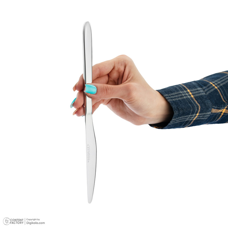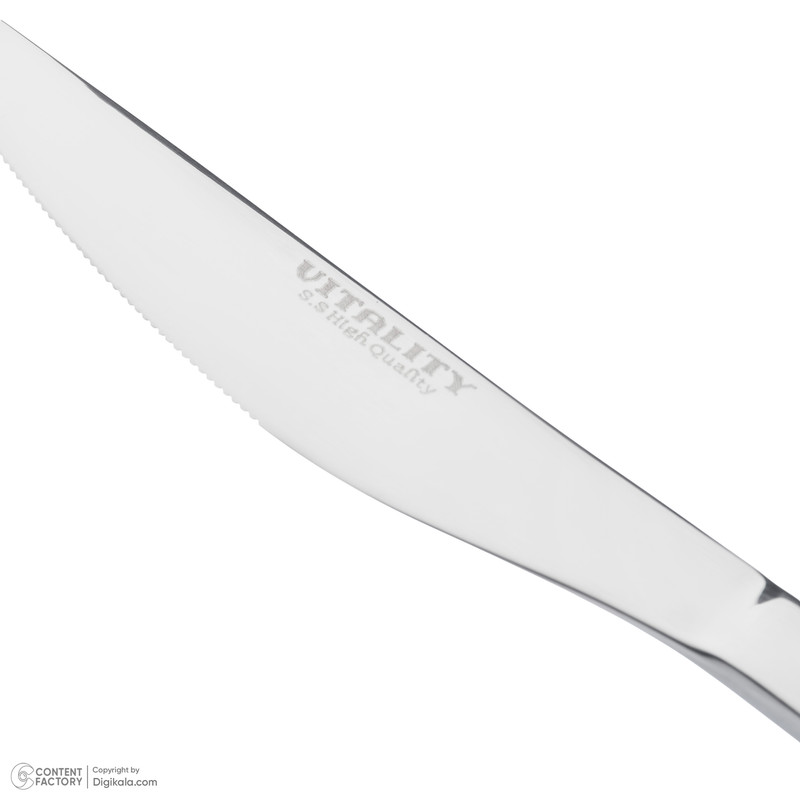 | سایر توضیحات | ۶ عدد کارد غذاخوری به ابعاد 23x2.5x0.5 سانتیمتر و وزن ۸۰ گرم استیل18/10ضد زنگ با ضخامت3/5میلیمتر |