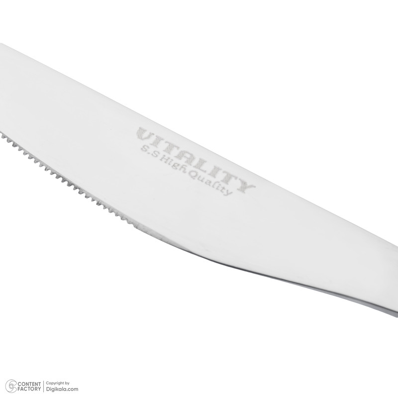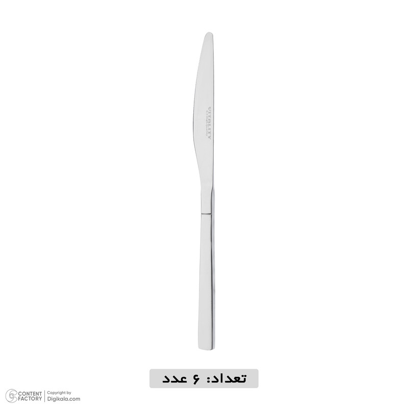 | سایر توضیحات | 6 عدد کارد غذاخوری به ابعاد 23x2x0.5 سانتیمتر و وزن 80 گرم استیل18/10ضد زنگ با ضخامت3/5میلیمتر |