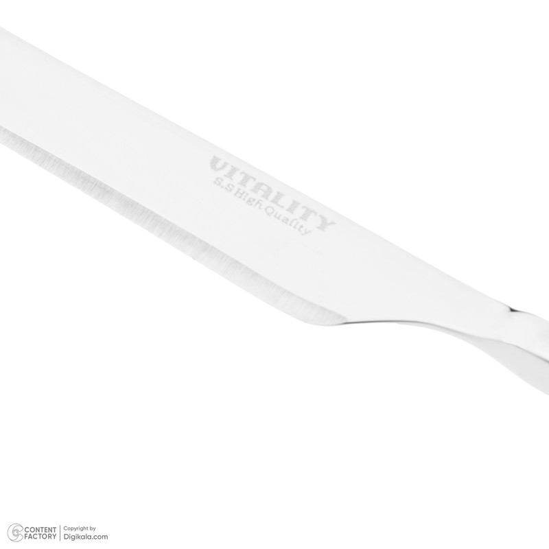 | سایر توضیحات | 6 عدد کارد میوه خوری به ابعاد 18x1x1 سانتی متر و وزن 55 گرم - استیل18/10ضد زنگ با ضخامت3/5میلیمتر |
