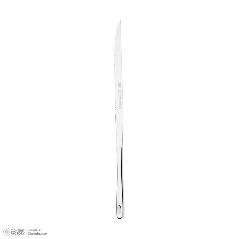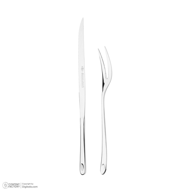 | سایر توضیحات | 1 عدد چنگال سرو گوشت به ابعاد 25x2.5x0.35 سانتی متر و وزن 60 گرم - 1 عدد کارد سرو گوشت به ابعاد 34x1.5x0.35سانتی متر - استیل18/10ضد زنگ با ضخامت3/5میلیمتر |