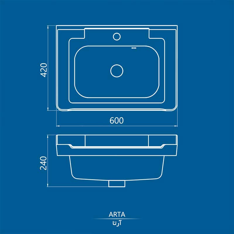 سایر توضیحاتابعاد: 60 در 42 سانتی‌متر عمق کاسه: 17 سانتی‌متر سطح شست‌وشوی بزرگ و مفید با طراحی مستطیلی دارای دو سوراخ جهت سرریز طراحی به صورت تک‌پانچ جهت نصب شیر آب