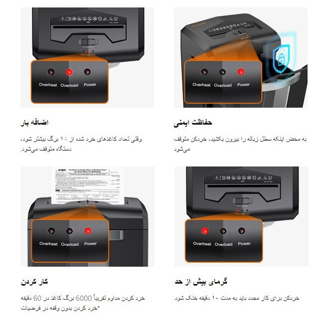 | نوع کاغذ خردکن | صنعتی ( بزرگ ) , اداری ( کوچک ) |