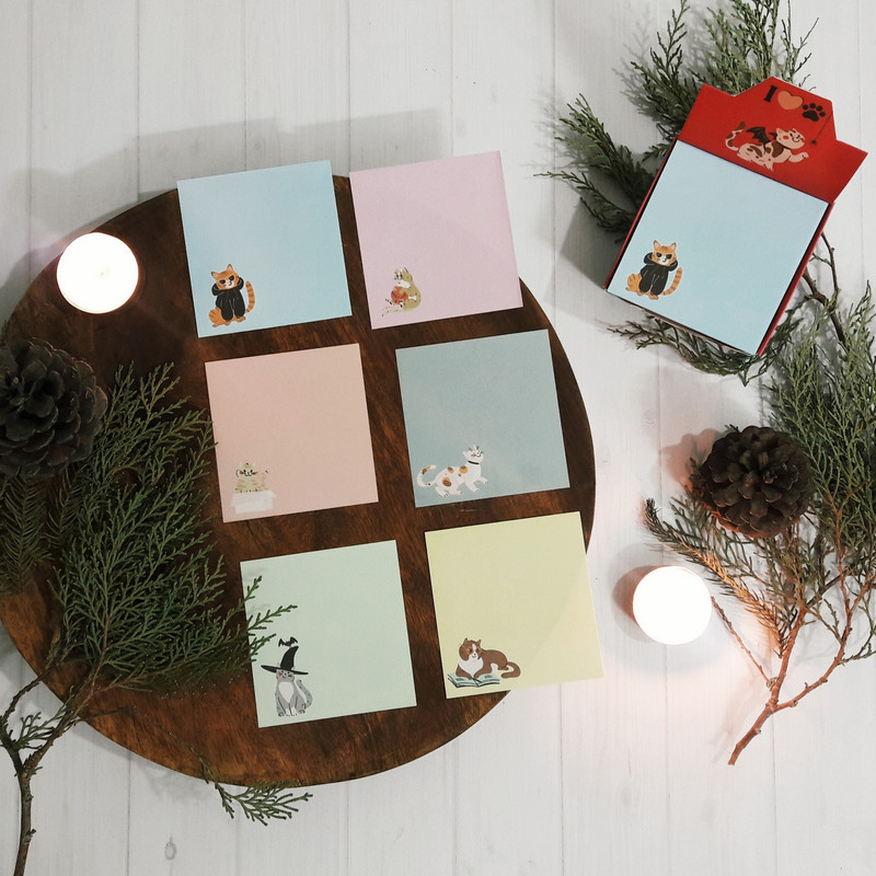 نوت باکس لاما جعبه ی مربعی با مجموعه ای تشکیل شده از برگه های رنگی یادداشت است . در هر باکس کاغذهای یادداشتی در 6 طرح و رنگ متفاوت است که می توان از آنها برای نوشتن یادداشت هایمان، جملات انگیزیشی، تبریک و ... استفاده کرد. سایز کاغذ ها 8 در 8 سانتی متر است و هر باکس شامل حدوداً 180 برگ یادداشت تمام رنگی می باشد.