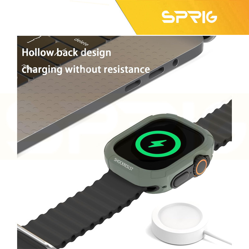 کاور اسپریگ مدل Rugged Armor مناسب برای اپل واچ تولید شده است، مقاومت بالایی دارد و بخوبی از ساعت اپل واچ شما در برابر ضربه و خط و خش محافظت می کند. این کاور راحت و سبک است و بخوبی بر روی دست قرار می گیرد و با برش های دقیقی که دارد هیچ محدودیتی در عملگر ها و سنسور های ساعت ایجاد نخواهد کرد. همچنین برای شارژ بیسیم آن محدودیت ندارید.