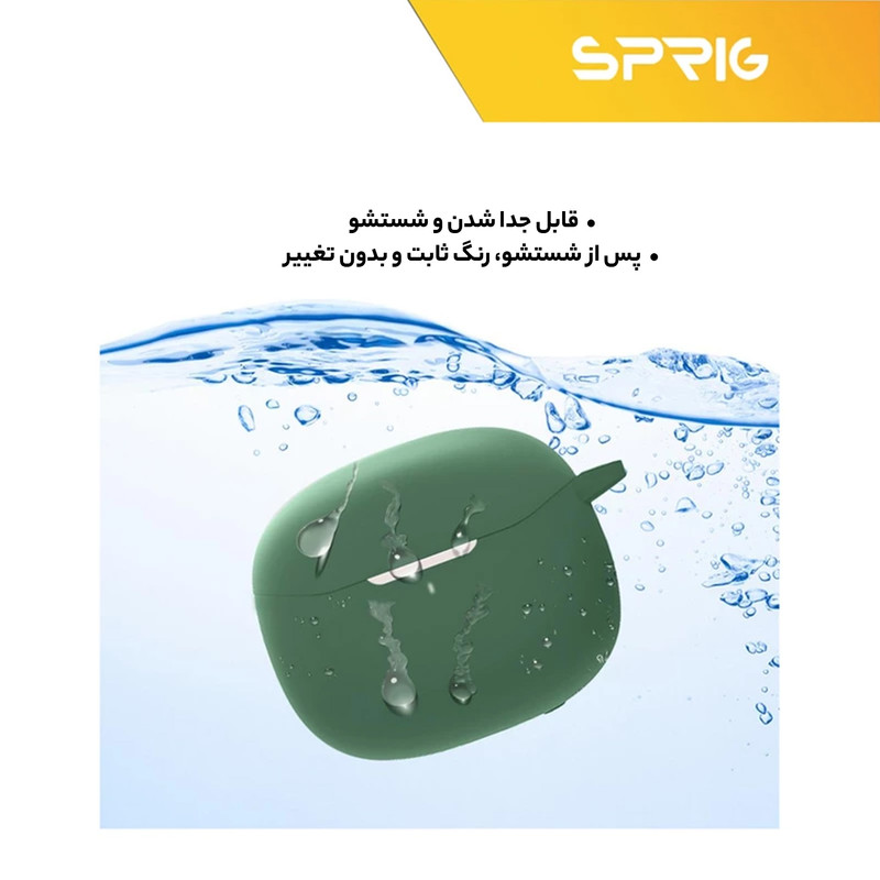 یکی از پر کاربرد ترین لوازم جانبی ایرپاد، کاور محافظ کیس شارژ ایرپاد است که با برند اسپریگ به بازار عرضه شده و در رنگ های متنوع به فروش می رسد و شما به سادگی می توانید با قاب گوشی موبایل خود ست نمائید. جنس این کاور بسیار نرم همراه با انعطاف پذیری بالا است که می تواند از محفظه شارژ ایرپاد شما در برابر ضربه و خط و خش محافظت نماید. این کاور کیس شارژ هندزفری به دلیل وزن سبکی که دارد به راحتی قابل حمل بوده و به هیچ وجه باعـث سنگینی کیس ایرپاد شما نمی شود. با استفاده از این کاور محافظ به سادگی می توانید به درگاه شارژ کیس ایرپاد دسترسی داشته و اپرپاد خود را شارژ نمائید. پوشش دهی این محصول به گونه ای است که به صورت کامل کیس شارژ ایرپاد شما را در بر می گیرد و از بدنه کیس شارژ شما در برابر خراشیدگی محافظت می کند.