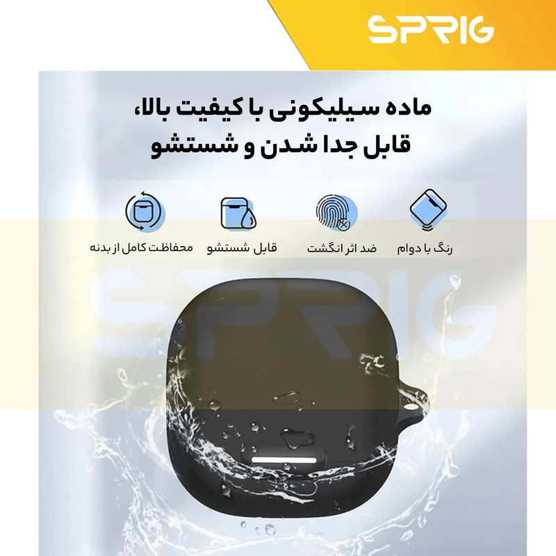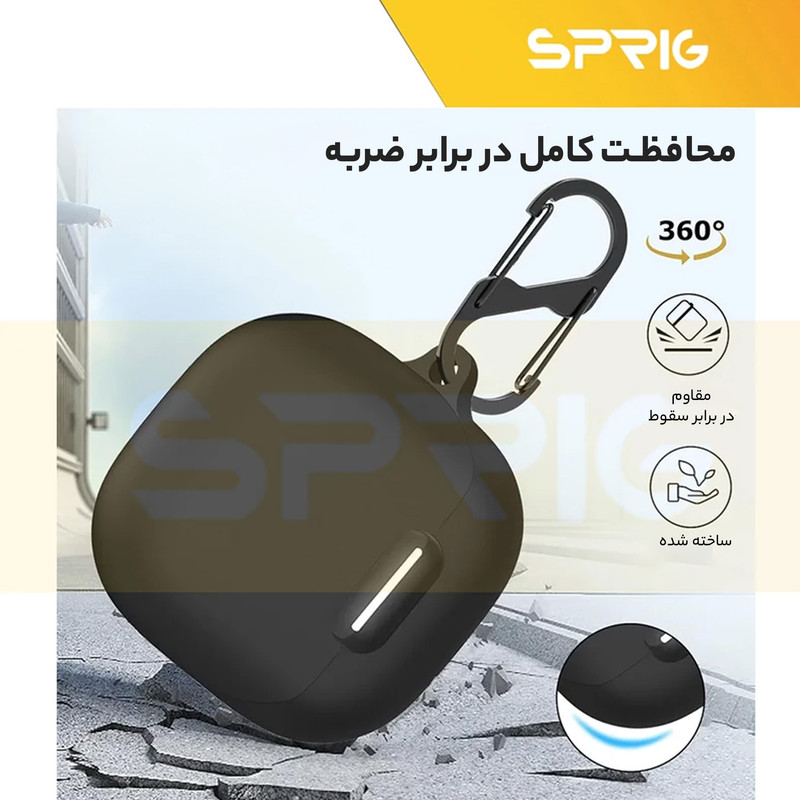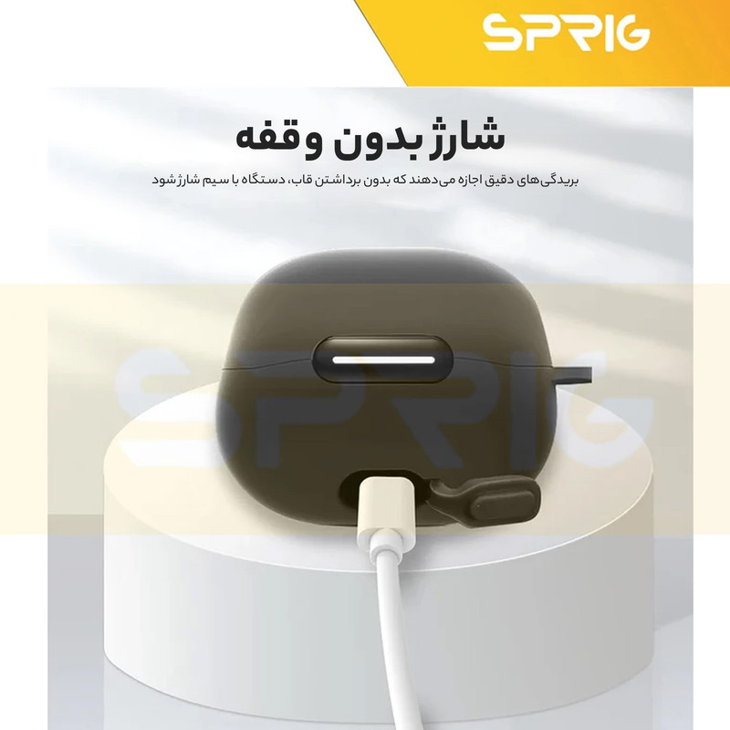 یکی از پر کاربرد ترین لوازم جانبی ایرپاد، کاور محافظ کیس شارژ ایرپاد است که با برند اسپریگ به بازار عرضه شده و در رنگ های متنوع به فروش می رسد و شما به سادگی می توانید با قاب گوشی موبایل خود ست نمائید. جنس این کاور بسیار نرم همراه با انعطاف پذیری بالا است که می تواند از محفظه شارژ ایرپاد شما در برابر ضربه و خط و خش محافظت نماید. این کاور کیس شارژ هندزفری به دلیل وزن سبکی که دارد به راحتی قابل حمل بوده و به هیچ وجه باعـث سنگینی کیس ایرپاد شما نمی شود. با استفاده از این کاور محافظ به سادگی می توانید به درگاه شارژ کیس ایرپاد دسترسی داشته و اپرپاد خود را شارژ نمائید. پوشش دهی این محصول به گونه ای است که به صورت کامل کیس شارژ ایرپاد شما را در بر می گیرد و از بدنه کیس شارژ شما در برابر خراشیدگی محافظت می کند.