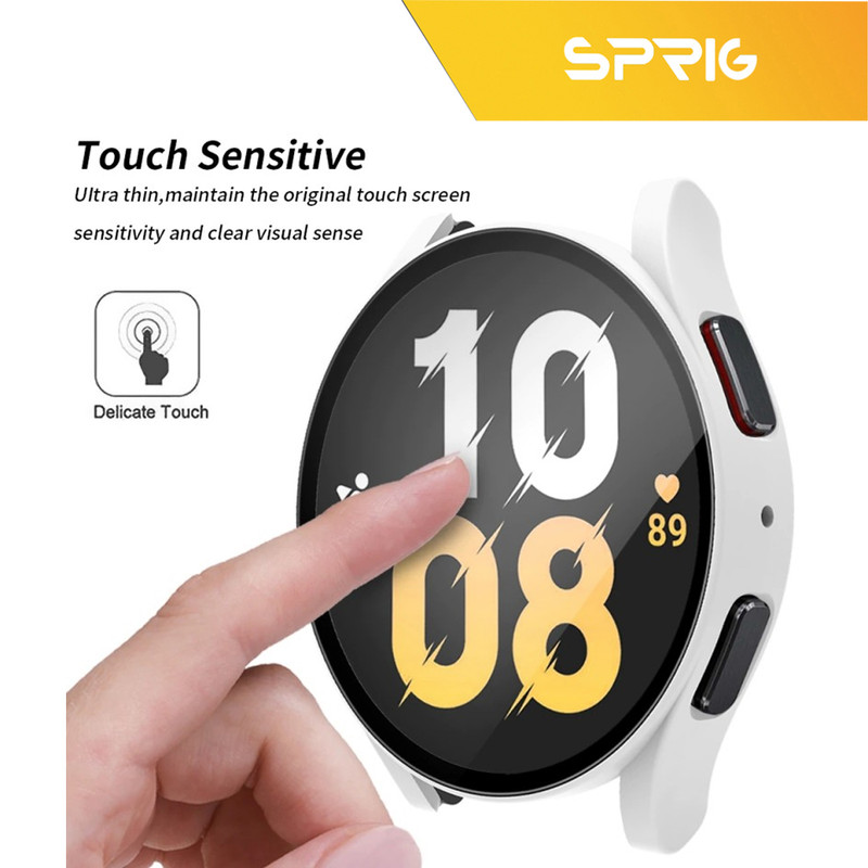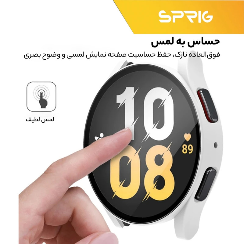 کاور اسپریگ مدل SP-360 ، بدنهای از جنس پلیکربنات دارد. این متریال نسبت به TPU سختتر بوده و با اینکه نسبت به آن انعطافپذیری کمتری دارد ولی محافظ قویتر و مستحکمتری محسوب میشود. هرچند سخت بودن این کاور اختلالی در نصب آن ایجاد نمیکند و با کمی دقت میتوان به آسانی آن را روی ساعت نصب نمود. برشکاری دقیق کاور محافظ Galaxy Watch 5 44mm در قسمت دکمهها و پورتها سبب شده تا در دسترسی به آنها محدودیتی ایجاد نشود. علاوه بر این ضخامت کم این محصول واچ شما را بیش از حد برجسته نمیکند و کاملا با ابعاد ساعت هماهنگ است.گلس حرارتدیده متصل به این کاور نیز با بهرهگیری از یک طراحی هوشمندانه به خوبی فشار لمس را به صفحه نمایش ساعت انتقال میدهد و تا حد ممکن اختلالی در عملکرد تاچ ایجاد نمیکند.