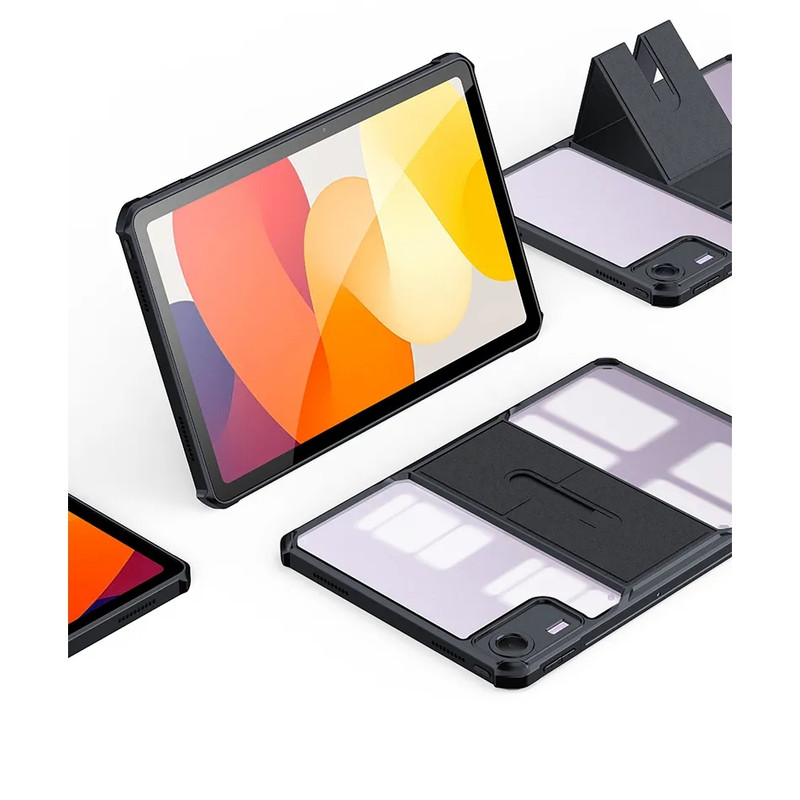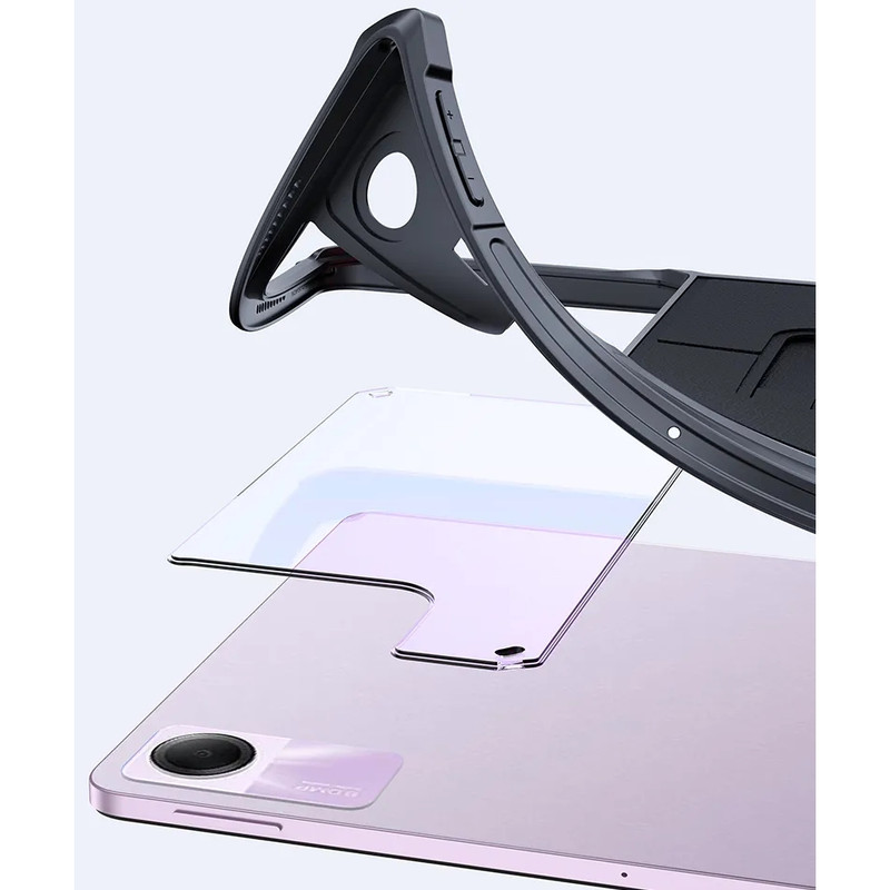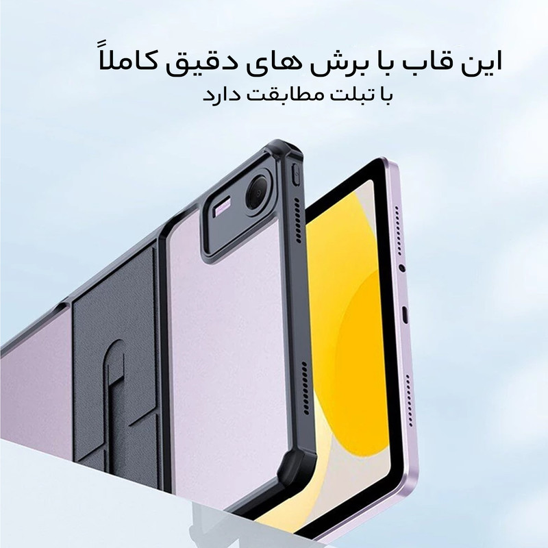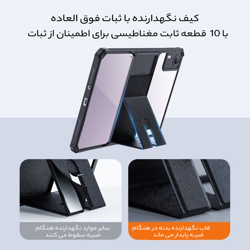 قاب بادیگارد مدل KickStand با بهره گیری از جدیدترین طراحی روز علاوه بر زیبایی امکان محافظت کامل از تبلت را نیز فراهم می کند. این کاور دارای کناره محکم و گوشه های کپسولی جهت حفاظت از تبلت در برابر صدمات می باشد. پشت این کاور طلق محکم شفاف می باشد که باعث حفظ زیبایی تبلت می شود. کاور KickStand دارای قسمت استند در پشت می باشد که باعث می شود تبلت در 3 حالت تماشای فیلم، حالت تایپ و حالت دستگیره ای جهت قرار گرفتن در کف قرار گیرد.