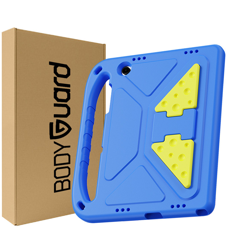 این قاب کودکانه از سری PUFF مخصوص تبلت Samsung Tab A9 Plus طراحی شده و با ظاهر رنگارنگ و پایه مثلثی شبیه پنیر، یک گزینه جذاب برای کودکان است. ساختهشده از متریال EVA نرم، این قاب مقاومت بالایی در برابر ضربه و سقوط دارد و لبههای تقویتشده آن از تبلت بهخوبی محافظت میکنند. دسته ضدلغزش با طراحی ارگونومیک، حمل آسان را برای کودکان فراهم کرده و پایه تاشو آن امکان تنظیم زاویه در حالتهای مختلف (۳۰ درجه برای نقاشی و ۶۰ درجه برای تماشا) را میدهد. قابلیت شستشو، ضدبو بودن و امکان شارژ بدون نیاز به باز کردن قاب نیز از دیگر ویژگیهای کاربردی این محصول است. طراحی فانتزی، سبک و کاربردی این قاب، آن را به انتخابی ایدهآل برای کودکان و والدین تبدیل کرده است.