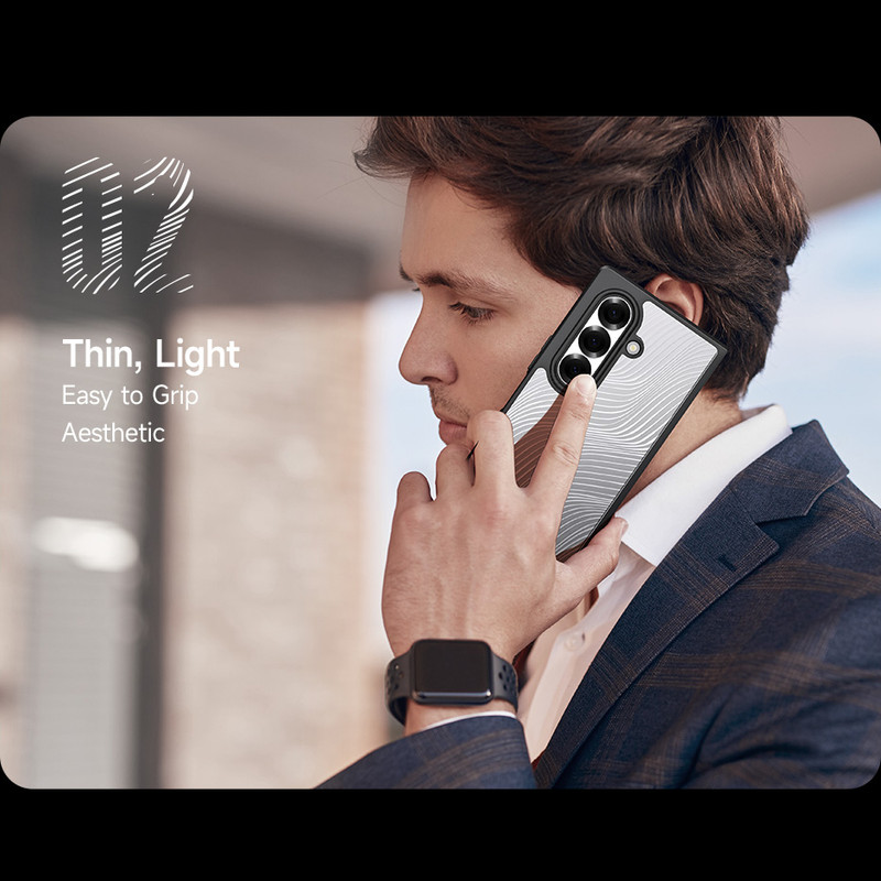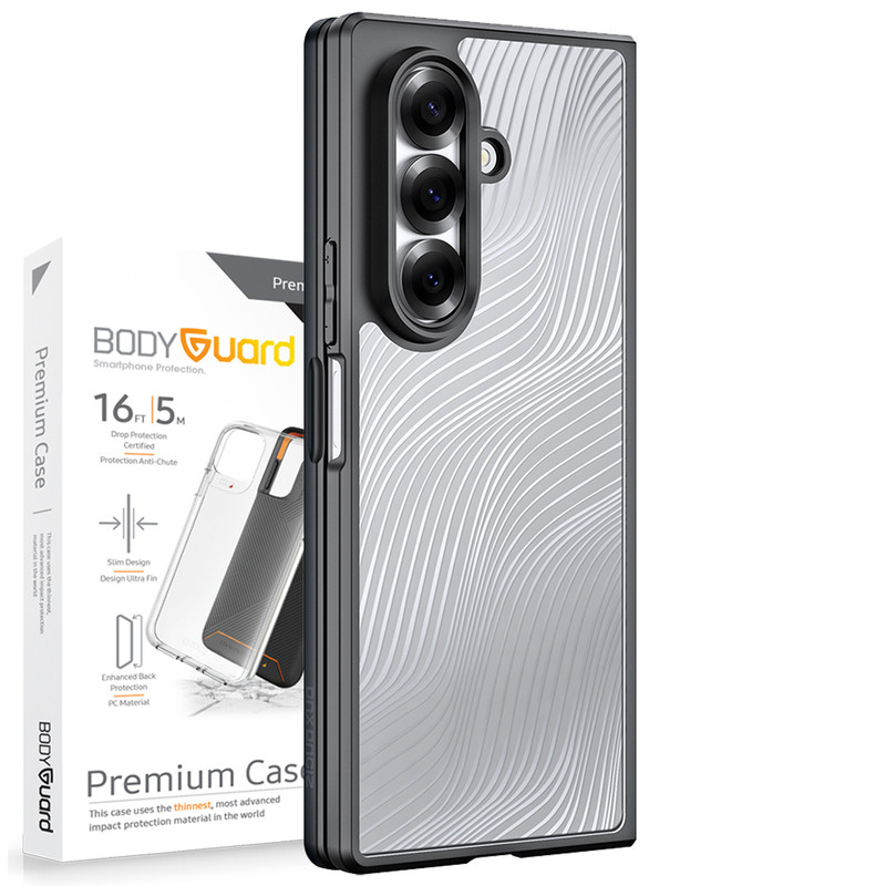 قاب Wave از برند بادیگارد برای گوشی Samsung Z Fold 7، این قاب با طراحی دو بخشی، ترکیبی از پلیکربنات شفاف در بخش بالایی و بافت مات در بخش پایینی دارد که ظاهری مدرن و خاص به گوشی میبخشد. لبههای کمی برجسته در اطراف دوربین و نمایشگر، محافظت بیشتری در برابر ضربه فراهم میکنند و طراحی دقیق آن باعث میشود باز و بسته شدن گوشی بهراحتی انجام شود. روکش قاب در برابر اثر انگشت، رطوبت و رنگرفتگی مقاوم است و طراحی باریک و خوشدست آن، حس خوبی هنگام استفاده روزمره منتقل میکند. Wave انتخابی مناسب برای کسانیست که به دنبال ترکیبی از استایل و محافظت استاندارد برای Z Fold 7 هستند.