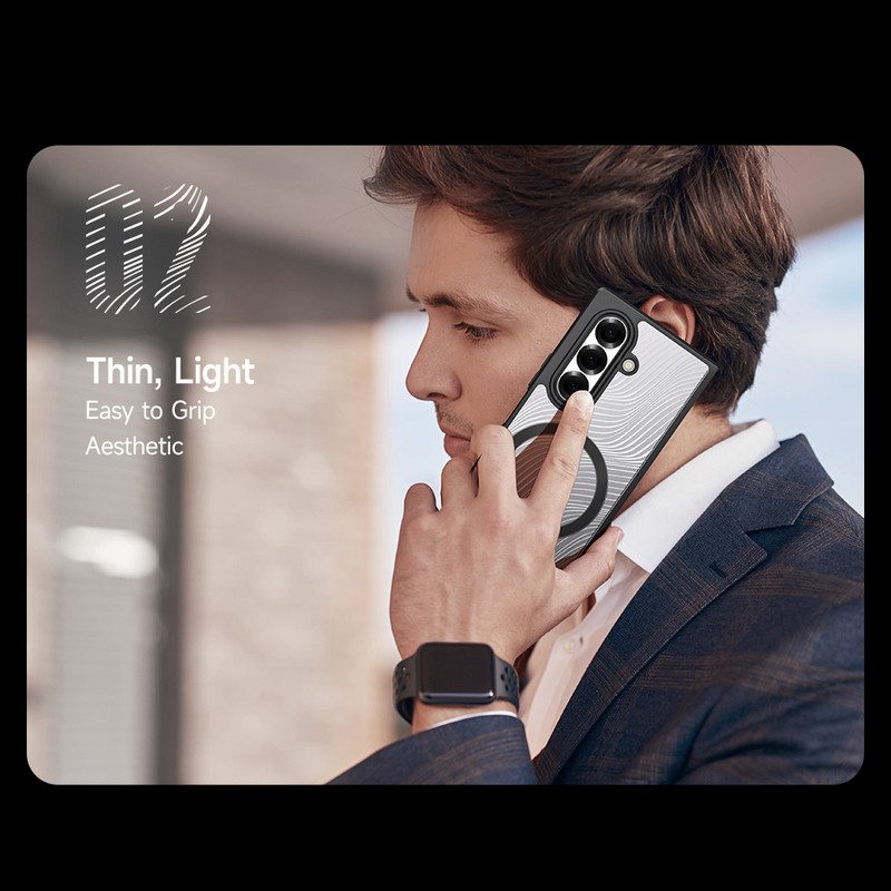 قاب Wave MagSafe از برند بادیگارد برای گوشی Samsung Z Fold 7 ترکیبی بینظیر از طراحی مدرن، محافظت پیشرفته و سازگاری کامل با فناوری MagSafe را ارائه میدهد. این قاب با استفاده از پنل پشتی مقاوم و مات با خطوط موجدار ظریف، جلوهای شیک و خاص به گوشی میبخشد و در عین حال بافت ضد اثر انگشت و ضد لک آن، ظاهر تمیز و حرفهای را حفظ میکند. لبههای نرم و انعطافپذیر TPU نصب آسان و حس لمس راحت را فراهم کرده و ضربهگیرهای تقویتشده در چهار گوشه، امنیت گوشی را در برابر سقوط و ضربه بهطور چشمگیری افزایش میدهند. حلقه مغناطیسی داخلی با چینش دقیق آهنرباها، اتصال سریع، ایمن و بدون لغزش به شارژرها و لوازم جانبی MagSafe مانند پاوربانک، کیف کارت و هولدر خودرو را تضمین میکند. طراحی دقیق اطراف لنز دوربین با لبههای برجسته، از خراشیدگی و آسیب به لنزها جلوگیری کرده و لبههای کمی برجستهتر از نمایشگر نیز مانع تماس مستقیم صفحه با سطوح میشوند. این قاب علاوه بر محافظت همهجانبه، با وزن سبک و فرم باریک خود، تجربهای خوشدست و بدون ایجاد حجم اضافی را ارائه میدهد و انتخابی ایدهآل برای کسانی است که بهدنبال ترکیب استایل، دوام و کارایی در یک محصول هستند.