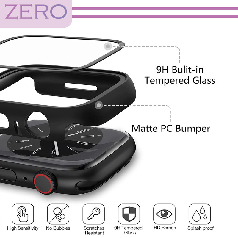 کاور زیرو مدل ZR-360 ، بدنهای از جنس پلیکربنات دارد. این متریال نسبت به TPU سختتر بوده و با اینکه نسبت به آن انعطافپذیری کمتری دارد ولی محافظ قویتر و مستحکمتری محسوب میشود. هرچند سخت بودن این کاور اختلالی در نصب آن ایجاد نمیکند و با کمی دقت میتوان به آسانی آن را روی ساعت نصب نمود. برشکاری دقیق کاور در قسمت دکمهها و پورتها سبب شده تا در دسترسی به آنها محدودیتی ایجاد نشود. علاوه بر این ضخامت کم این محصول اپل واچ شما را بیش از حد برجسته نمیکند و کاملا با ابعاد ساعت هماهنگ است.گلس حرارتدیده متصل به این کاور نیز با بهرهگیری از یک طراحی هوشمندانه به خوبی فشار لمس را به صفحه نمایش ساعت انتقال میدهد و تا حد ممکن اختلالی در عملکرد تاچ ایجاد نمیکند.