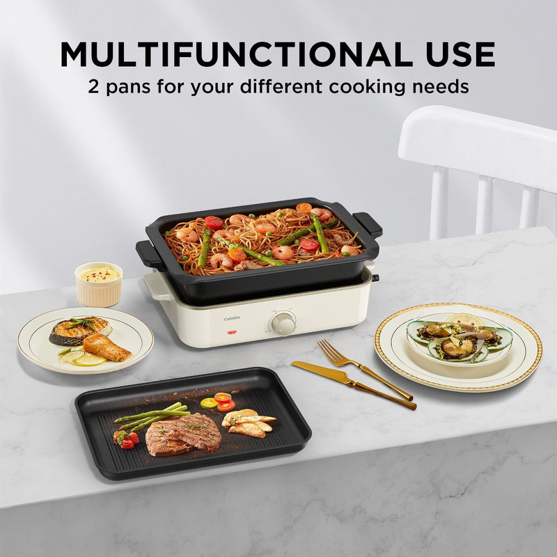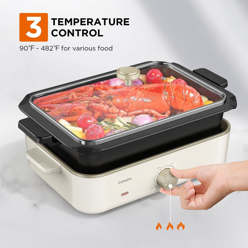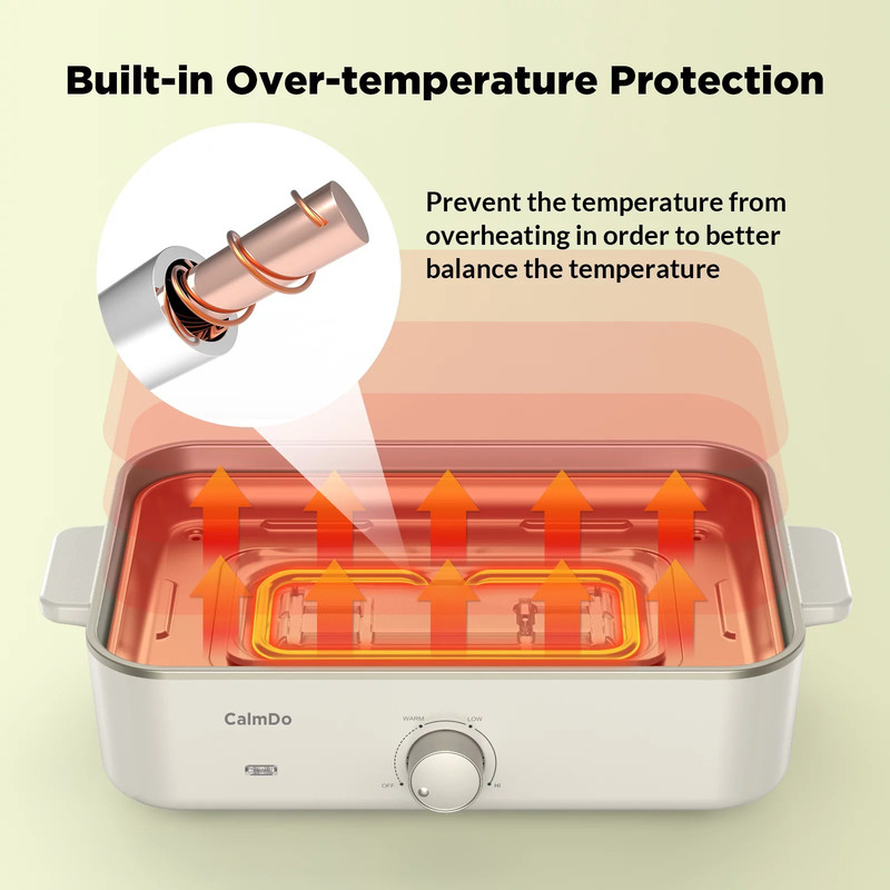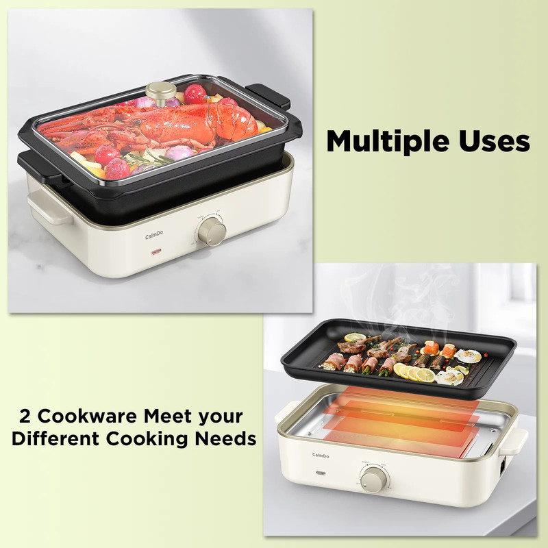 سایر توضیحات کباب پز برقی سنتی CalmDo CD-EC002 : سفید 1400 وات، ظرفیت : 3.4 لیتر، ولتاژ: AC220V-240V,50/60Hz همراه با دو تابه: تابه عمیق برای سوپ، گامبو، برشته کبابی، فوندو، قابلمه داغ و موارد مشابه طراحی شده است. بشقاب تخت عمدتاً برای کباب کردن و سرخ کردن غذاهای دریایی، تخم مرغ، استیک، بیکن و موارد مشابه است.فضای پخت و پز بزرگ: اندازه تابه گریل 12 اینچی 12 در 8 در 1 اینچ و ابعاد ماهیتابه 12 در 8 در 2.75 اینچ در داخل است، به اندازه کافی بزرگ است که به یک خانواده 4 تا 5 نفره خدمات می دهد. علاوه بر این، تابه‌های مستطیلی و تابه‌های گریل فضای پخت و پز بیشتری نسبت به تابه‌ها و تابه‌های گرد ارائه می‌کنند.درجه حرارت دقیق و پخت یکنواخت: گرم، کم، بالا 3 درجه حرارت در محدوده 158 ℉ تا 482 ℉، دارای صفحه حرارتی بزرگ و قدرت قوی 1400 وات، پخت سریع و یکنواخت غذا را ارائه می دهد.تجربه آشپزی دلپذیر: دسته های خنک نمی سوزند، درب شیشه ای برای نظارت بر پیشرفت غذا، طراحی جداشدنی برای ذخیره سازی فشرده، پوشش نچسب برای تمیز کردن آسان، این طرح های متفکرانه تجربه آشپزی دلپذیری را به شما می دهد. می توانید در آن خورش، آب پز، کبابی یا سرخ کنید. غذاها شامل اما نه محدود به گوشت سرخ شده، کباب، سوپ خانگی، گولش، پنکیک و غیره است.✅این باعث می شود که غذا به راحتی از سطح پخت جدا شود و تمیزی آن به میزان قابل توجهی کاهش می یابد. همه لوازم جانبی قابل شستشو در ماشین ظرفشویی هستند و طراحی جمع و جور آنها به راحتی و بدون اشغال فضای زیادی قابل نگهداری است.تنظیم درجه حرارت 3 سطح: گرم، کم و زیاد، از 70 درجه سانتی گراد (158 درجه فارنهایت) تا 250 درجه سانتی گراد (482 درجه فارنهایت). دکمه کنترل دما با یک دکمه، آسان برای استفاده و آسان برای کار. شما می توانید دمای مناسب را برای غذاهای مختلف انتخاب کنید.با طراحی پیشرفته فیوز حرارتی به راحتی می تواند از گرمای بیش از حد جلوگیری کند و دما را کنترل کند، روکش شیشه ای می تواند به طور موثر پاشش را کاهش دهد و در هر فرصتی به راحتی با کلید قفل می شود، استفاده از آن حتی برای افراد مسن نیز ایمن و آسان است.