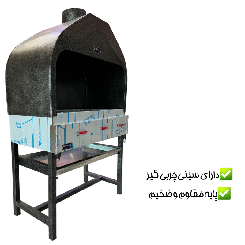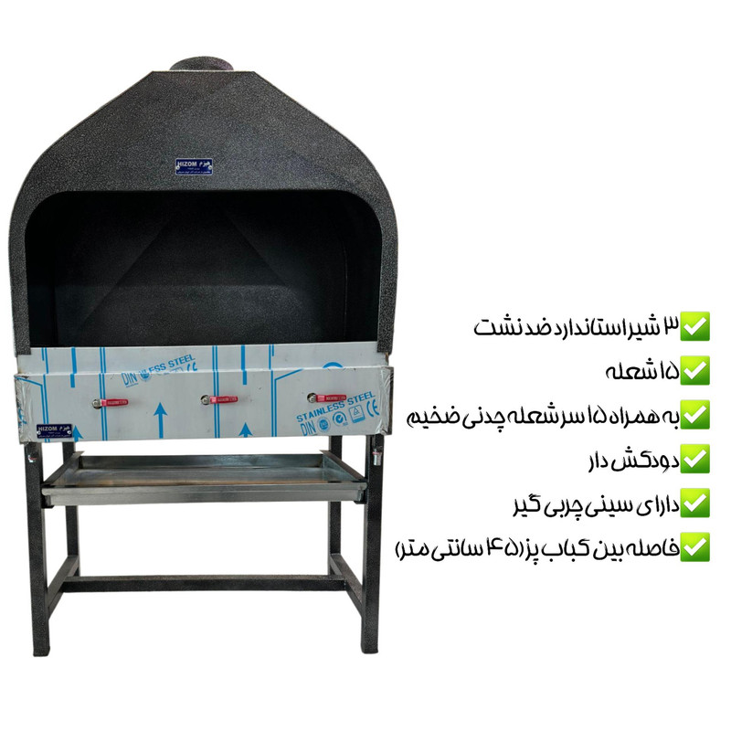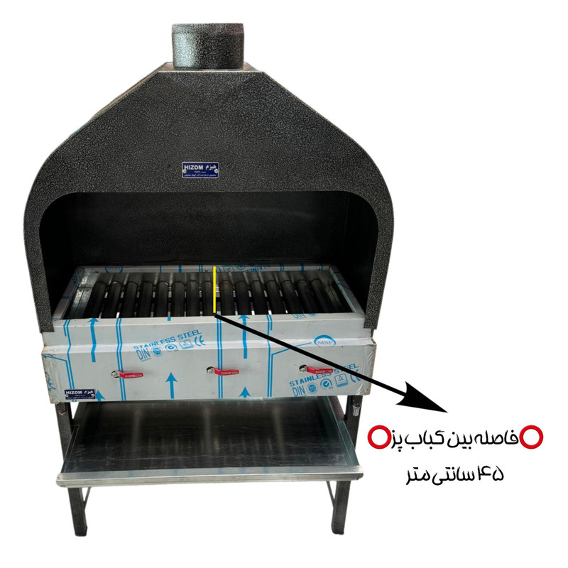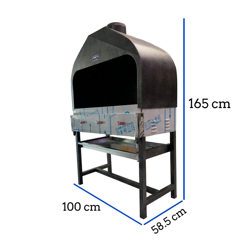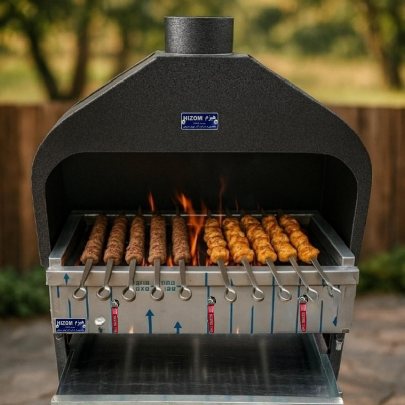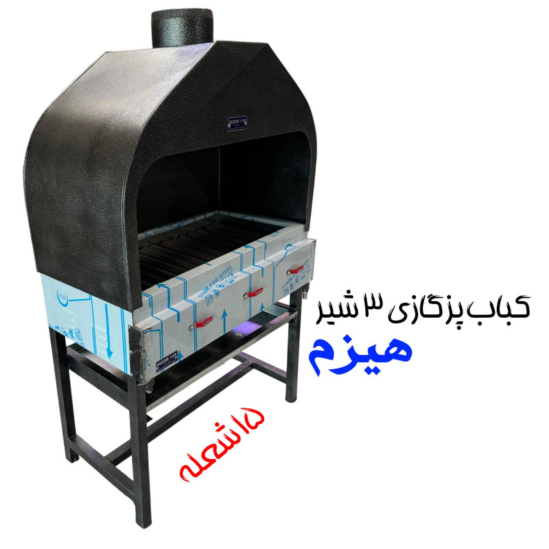کباب پز گازی مهمترین وسیله هر رستوران و غذاخوری است. این کباب پز در تمام مدت کار یک رستوران روشن است و کیفیت نهایی کباب را این دستگاه تعیین می کند. چون اگر کباب پز بی کیفیت باشد طبیعتا بر روی پخت کباب و ... تاثیر می گذارد. کباب پز گازی دودکش دار 1 متری هیزم یکی از محصولات با کیفیت و پرکابرد در رستوران ها می باشد که این محصول گازی بوده و 15 شعله دارد که روی هر کدام از 15 شعله 1 سر شعله چدنی ضخیم نیز وجود دارد. به این سپرهای حرارتی “رویه کباب پز” یا “ناودانی” می گویند. این سر شعله ها باعث می شود که آتش و گرما به صورت غیر مستقیم و یکنواخت روی کباب و جوجه و ... اثر بگذارد. در واقع شعله ها به ناودانی ها برخورد کرده و سطح آنها را کاملا داغ می کند. این حرارت به کباب می رسد و سبب پختن آن می شود. کباب پز با 3 شیر استاندارد ضد نشت کنترل می شود. مهمترین ویژگی این کباب پز دودکش دار بودن آن است که باعث می شود دود موجود به سمت بالا برود. قطر دهانه دودکش 20 سانتی متر است. برای چربی و روغن کباب ها نیز یک سینی چربی گیر زیر منقل تعبیه شده است که محیط را کثیف نخواهد کرد. ابعاد این محصول به طول 100 به عرض 58/5 و به ارتفاع 165 سانتی متر است. جنس کباب پز نیز تمام استیل است که این جنس یکی از ویژگی های مهم در کباب پز ها است. زیرا بدنه استیل علاوه بر زیبایی اسکلت کار نیز از پروفیل استیل است که دوام بیشتری دارد.