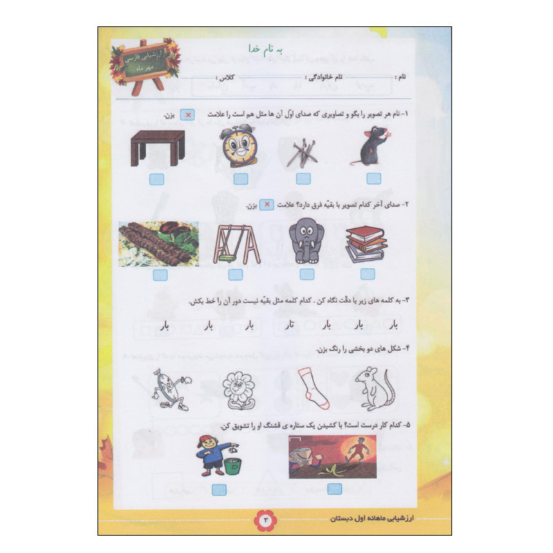 | موضوع | ارزشیابی جامع ماهیانه اول دبستان |