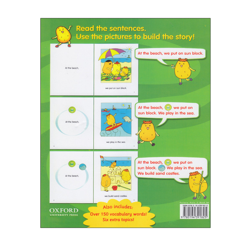 مجموعه داستان های دو سطحی Potato Pals با 5 داستان متنوع در هر پک (Potato Pals1, Potato Pals2) برای کودکان رده سنی 5 تا 7 مناسب می باشد و از طریق داستان به آموزش لغات و عبارات کاربردی می پردازد. از این مجموعه می توانید به راحتی در کنار هر مجموعه آموزشی استفاده کنید.