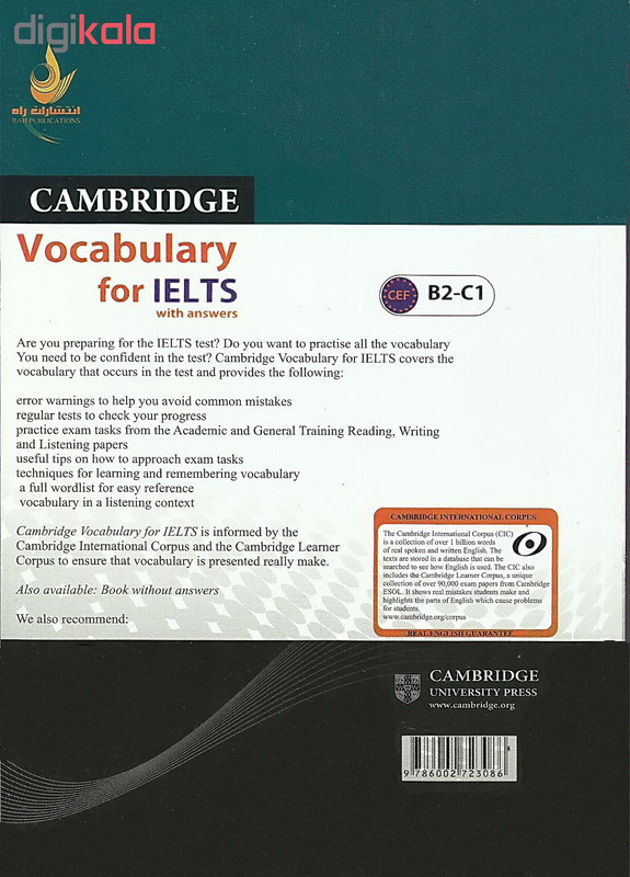 کتاب "Cambridge Vocabulary For IELTS" شامل واژگانی است که در آزمون آیلتس به کار میرود. این کتاب از طریق شنیدن و خواندن متنهای مرتبط با آزمون آیلتس واژههای جدید و مهم را به مخاطبان میآموزد. یادگیری واژه در متن باعث میشود کلمهها به سرعت وارد حافظه شوند. این کتاب با ارائهی آزمونهای منظم نیاز زبانآموزان این آزمون را برطرف میسازد و شامل تمرینهایی از تستهای Reading و Writing و Listening آزمونهای عمومی و آکادمیک آیلتس است. راهنمایی و توصیف واژگان نیز از ویژگیهای کتاب حاضر است. در صفحات ابتدای کتاب نیز نحوهی برگزاری آزمون آیلتس، زمانبندی و نمرهدهی آن معرفی شده است. همچنین پاسخنامه کامل با جزییات نیز در پایان کتاب ارائه شده است.