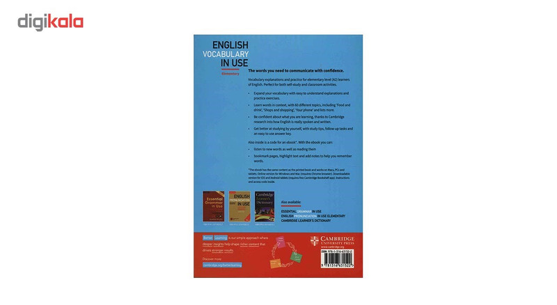 کتاب «English Vocabulary In Use Elementary» را «مایکل مکارتی» و «فلیسیتی اودل» تدوین کرده‌اند. مجموعه‌ کتاب‌های خودآموز Vocabulary in Use برای آموزش کلمات و اصطلاحات زبان انگلیسی و در سطوح مختلف، از پایه تا سطوح پیشرفته از سوی انتشارات کمبریج منتشر شده است. درسنامه‌های این کتاب در سمت چپ، تمرین‌ها در مقابل آن و&n...