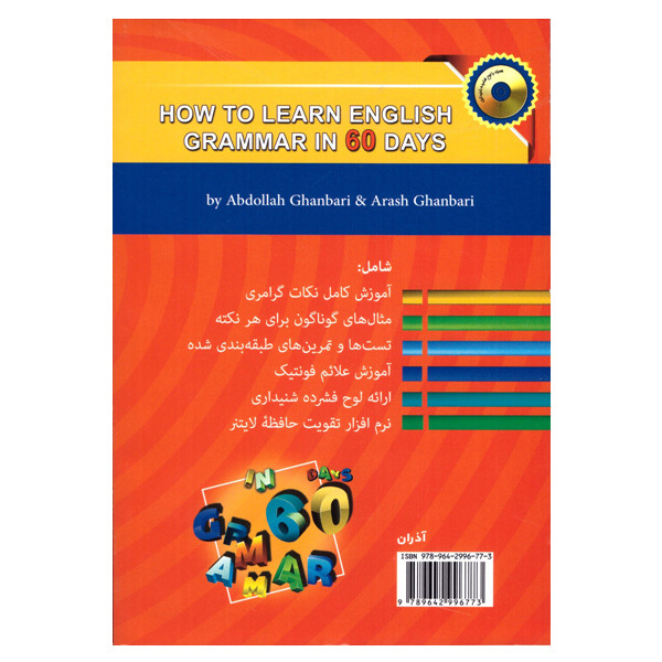 این مجموعه دارای یک لوح فشرده صوتی است و گرامر انگلیسی را در سه سطح مقدماتی (Elementary)، متوسطه (Intermediate) و پیشرفته (Advanced) آموزش می دهد. برای بخاطر سپردن الگوها و نکات مهم، نرم افزار تقویت حافظه لایتنر، در CD گنجانده شده است. این کتاب شامل 60 درس است و در پایان هر درس، تست و تمرین های طبقه بندی شده بصورت خودآزمایی ارائه شده است. اگر روزی یک درس از کتاب را یاد بگیرید، در مدت 60 روز قادر خواهید بود کتاب را تمام کنید؛ بنابراین تا تمام مطالب یک درس را خوب یاد نگرفته اید، به درس بعدی نپردازید.